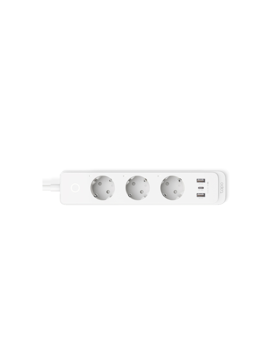 TP-Link Tapo P300. Cantidad de salidas AC: 3 salidas AC, Tipo de enchufe: Type F (CEE 7/4), Longitud de cable: 1,5 m. Potencia máx. de entrada: 2300 W, Voltaje de entrada AC: 220 - 240 V, Frecuencia de entrada AC: 50 - 60 Hz. Wi-Fi estándares: 802.11b, 802.11g, Wi-Fi 4 (802.11n), Tipo de puerto USB: USB Type A/USB Type-C. Ancho: 55 mm, Profundidad: 40 mm, Altura: 268 mm. Cantidad por paquete: 1 pieza(s)