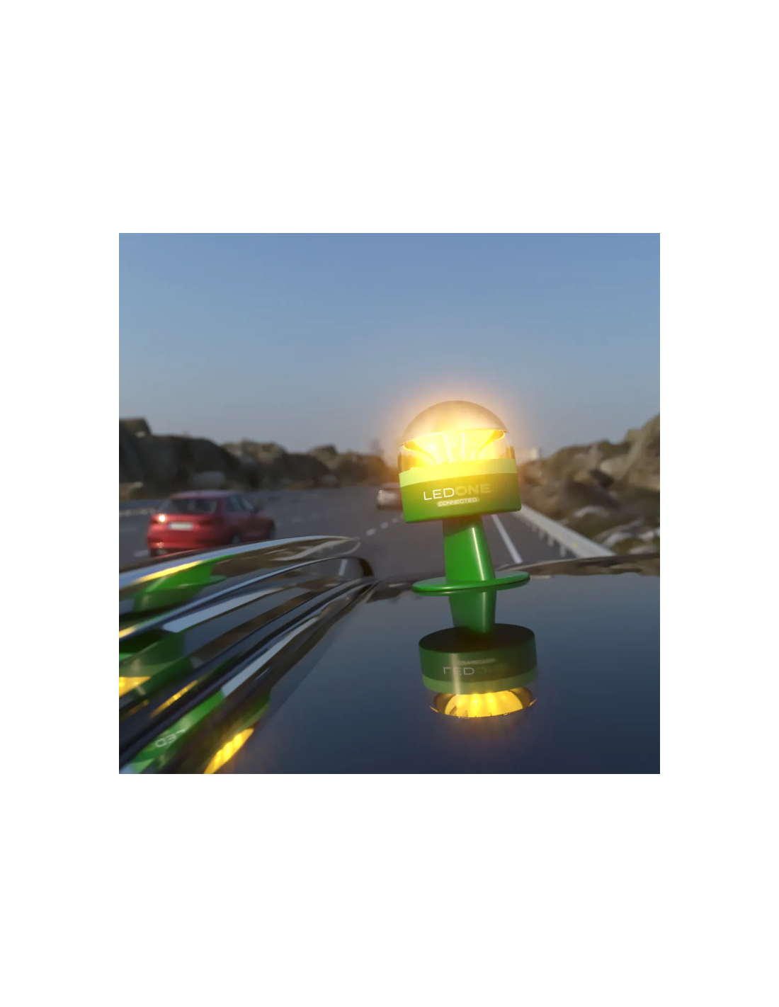Luz de Emergencia LEDONE ECO Connected para carretera, compuesta por un emisor de luz intermitente. Evita situaciones de peligro y aumenta tu seguridad en carretera o cualquier otro lugar que requiera señalizar una zona de peligro. La luz de emergencia se coloca fácil y rápidamente sobre cualquier superficie metálica o plástica. Dispone de una base magnética y un adhesivo de doble cara.