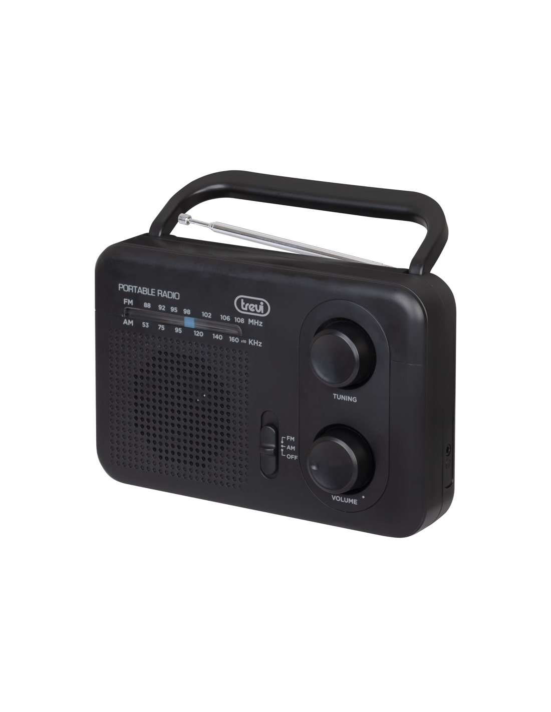 Trevi 0RA7F6400. Tipo de radio: Portátil, Tipo de sintonizador: Analógica, Bandas de radio soportadas: AM, FM. Potencia estimada RMS: 0,7 W. Tipo de altavoces: De 1 vía. Tipo de visualizador: Analógica. Auriculares: 3,5 mm