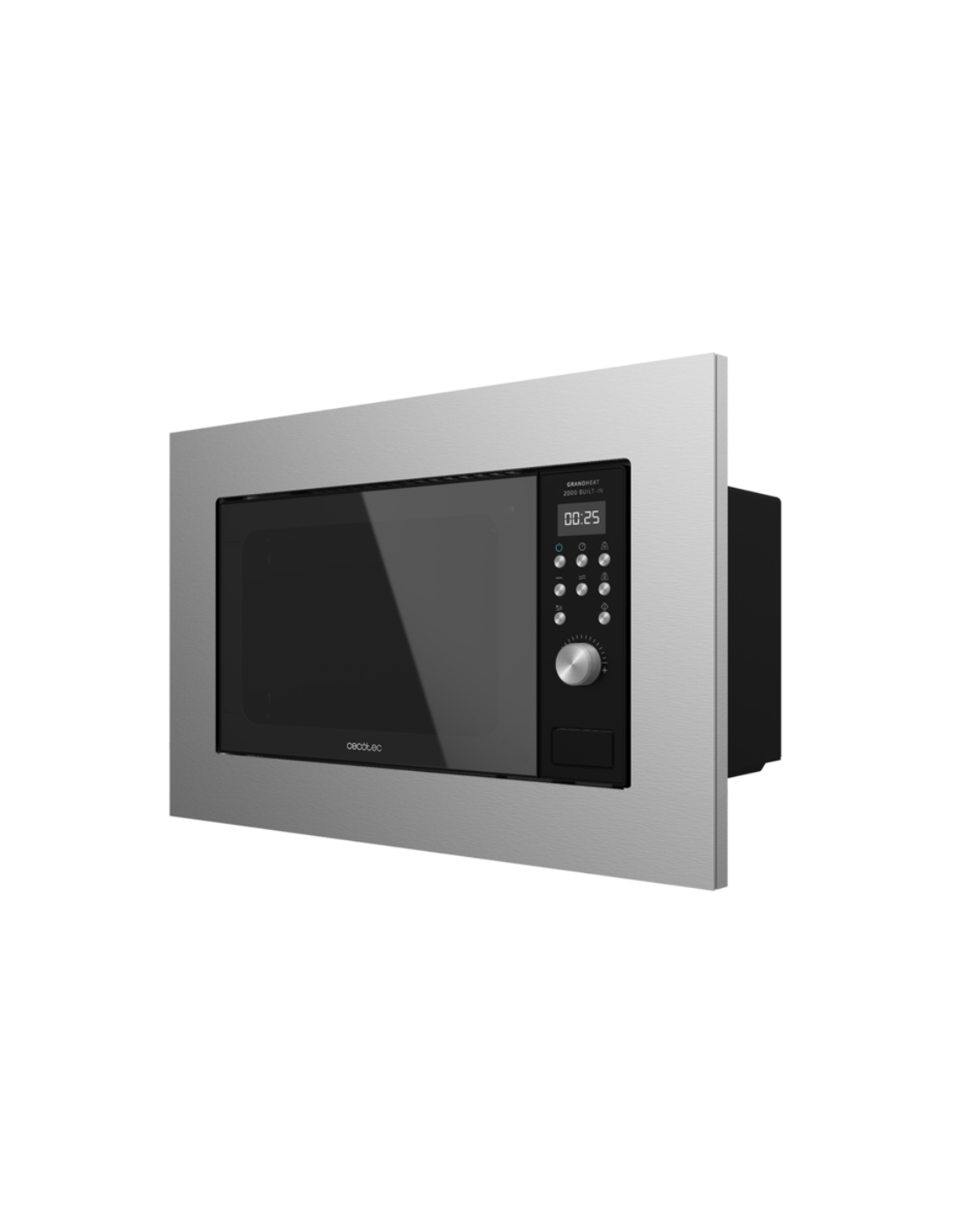 Cecotec 01380. Tipo de instalación: Integrado, Tipo de producto: Microondas con grill, Capacidad interior: 20 L, Potencia del microondas: 700 W, Pantalla incorporada, Tipo de control: Botones, Giratorio, Color del producto: Negro, Acero