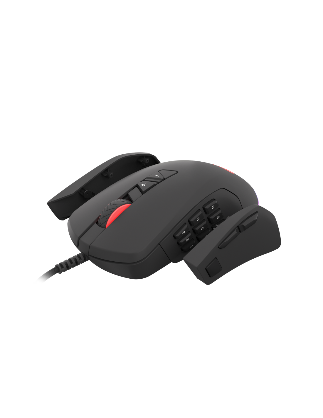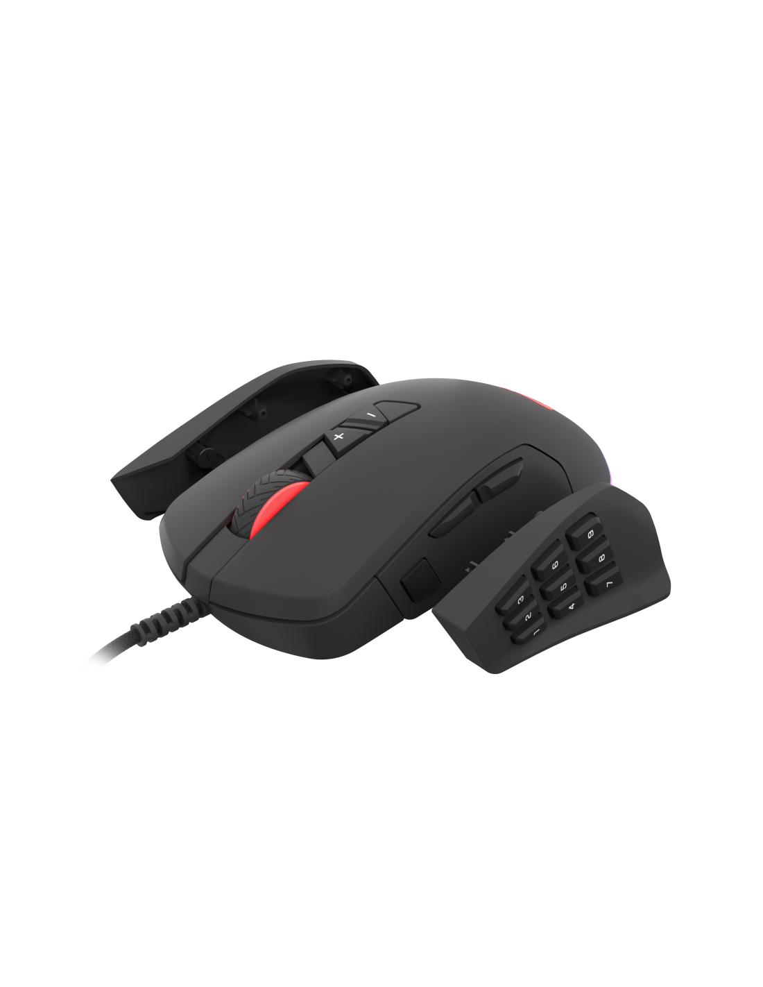 Por lo tanto, el Xenon 770 está equipado con dos paneles laterales extraíbles: uno con nueve botones, perfecto para los juegos MMO, mientras que el otro, con los tres botones, que permite hacer capturas en FPS de manera más fácil.
