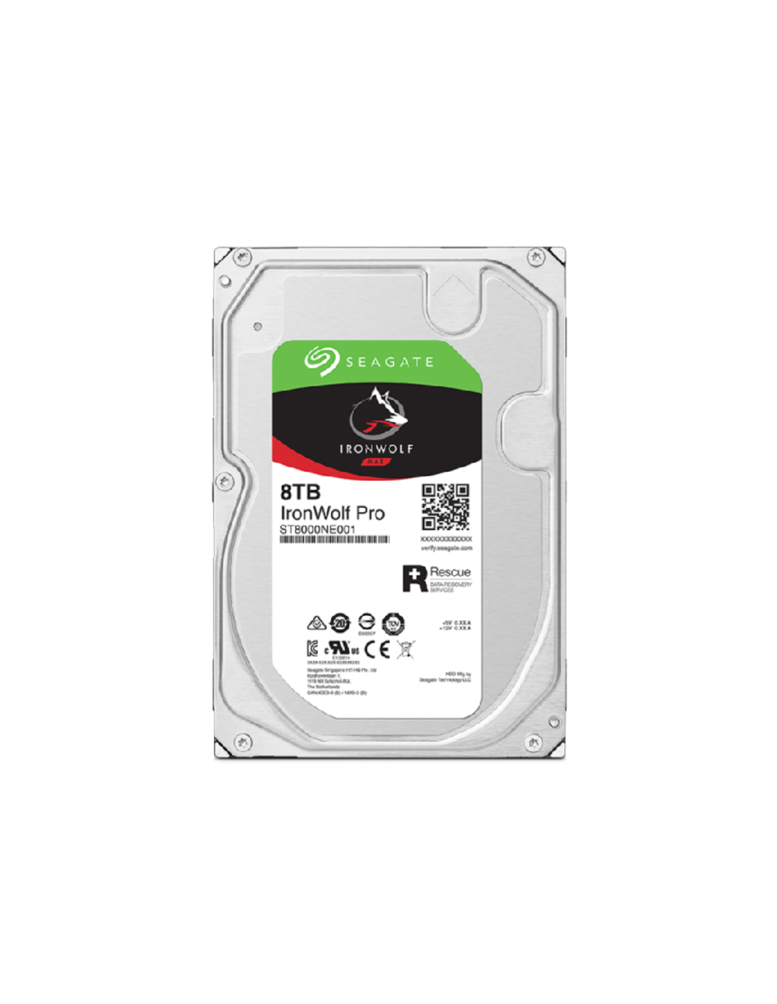 Seagate IronWolf Pro ST8000NT001. Capacidad del HDD: 8 TB, Velocidad de rotación del HDD: 7200 RPM, Tamaño de unidad de almacenamiento de búfer: 256 MB, Tamaño del HDD: 3.5", Interfaz: Serial ATA III
