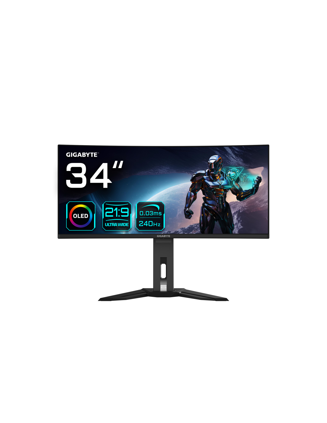GIGABYTE Monitor de juegos curvo OLED WQHD MO34WQC2 de 34" - 3440 x 1440, 240Hz, 0.03ms, KVM, 250 cd/m², FreeSync Premium Pro, D