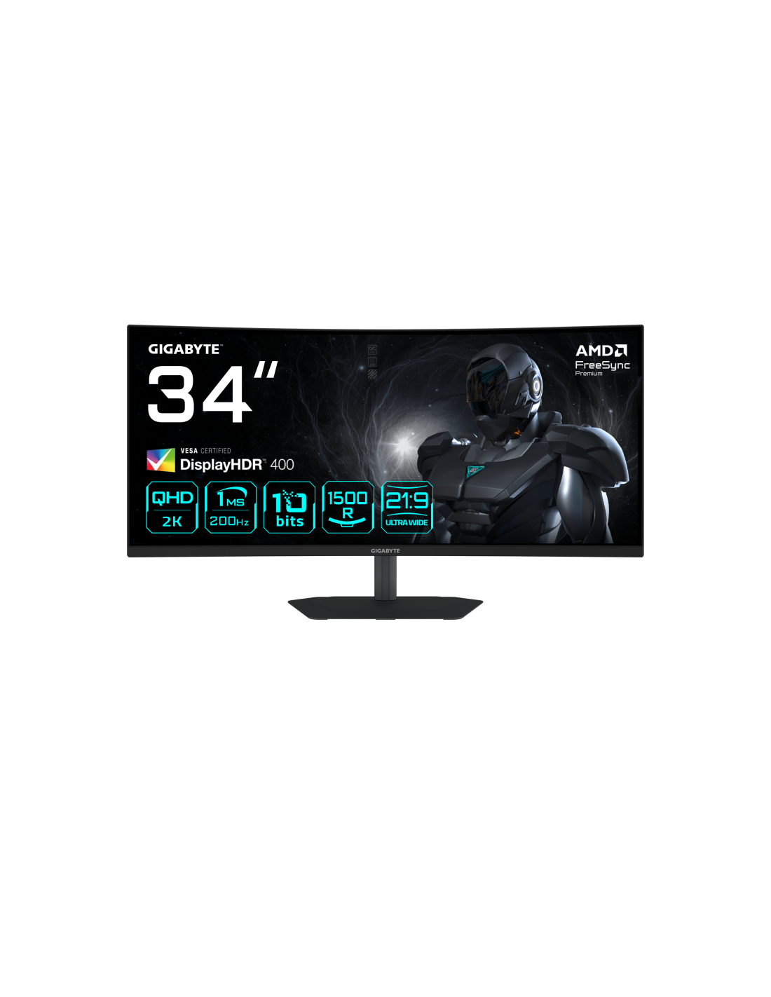GIGABYTE G34WQC2 Monitor Gaming Curvo 34” WQHD - 3440 x 1440, 1500R, 200Hz, 1ms, 450 cd/m², AMD FreeSync Premium, DisplayHDR 400, HDMI 2.0, Displayport 1.4. Diagonal de la pantalla: 86,4 cm (34"), Resolución de la pantalla: 3440 x 1440 Pixeles, Tipo HD: UltraWide Quad HD, Tecnología de visualización: LED, Superficie de la pantalla: Mate, Tiempo de respuesta: 1 ms, Relación de aspecto nativa: 21:9, Ángulo de visión, horizontal: 178°, Ángulo de visión, vertical: 178°. Altavoces incorporados. montaje VESA, Aju