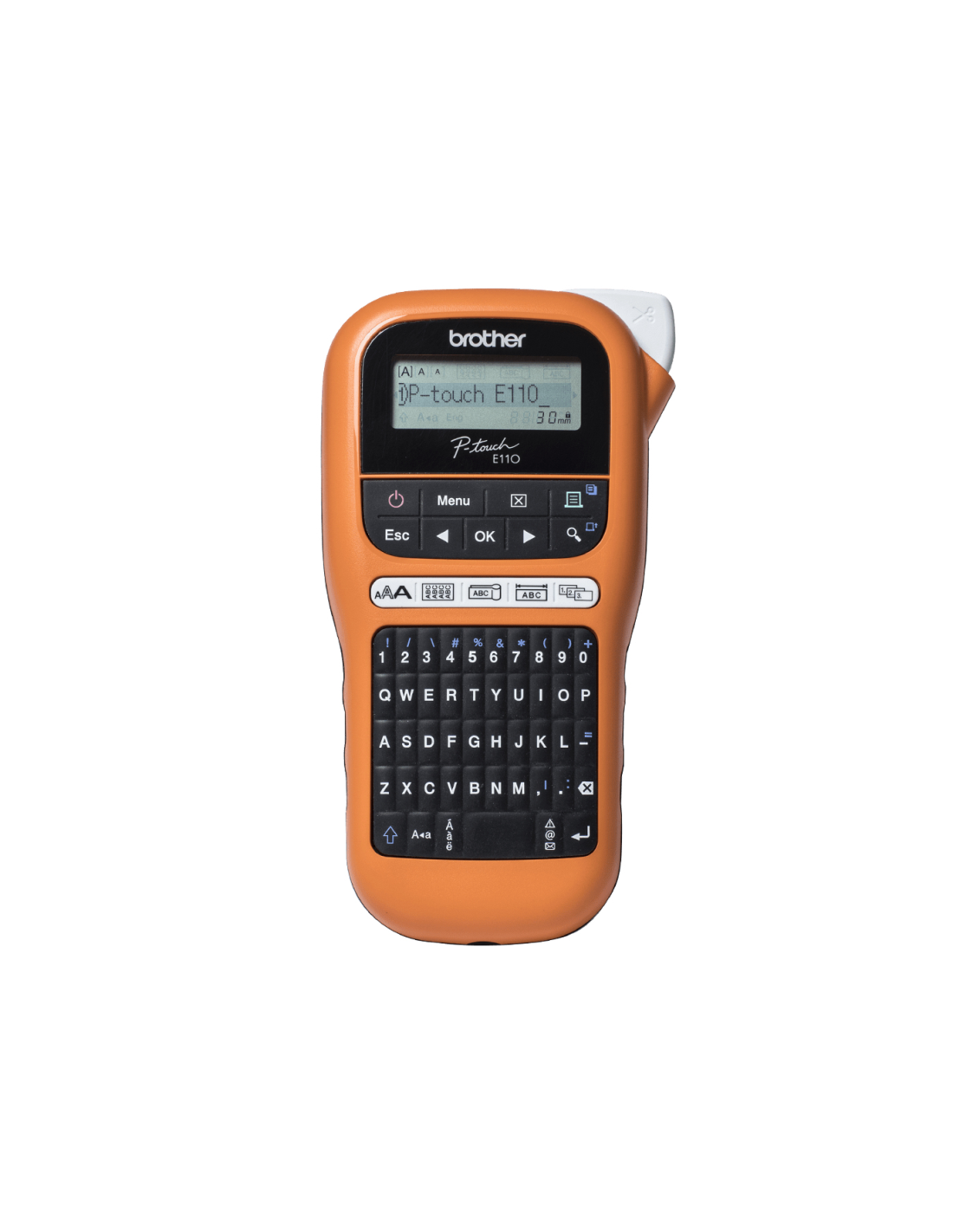Brother PTE110VPYP1. Resolución máxima: 180 x 180 DPI, Velocidad de impresión: 20 mm/s. Diseño de teclado: QWERTY. Tipo de cinta: TZe. Ancho de papel soportado: 3.5, 6, 9, 12 mm. Color del producto: Negro, Naranja