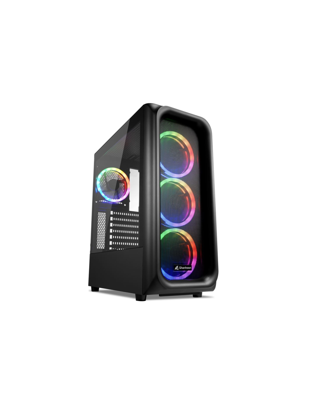 Sharkoon TK5M RGB ATX. Factor de forma: Escritorio, Tipo: PC, Color del producto: Negro. Ventiladores frontales instalados: 3x 120 mm, Diámetro de ventiladores frontales soportados: 120 mm, Ventiladores traseros instalados: 1x 120 mm. Tamaños de disco duro soportados: 2.5,3.5". Ancho: 200 mm, Profundidad: 411 mm, Altura: 456 mm