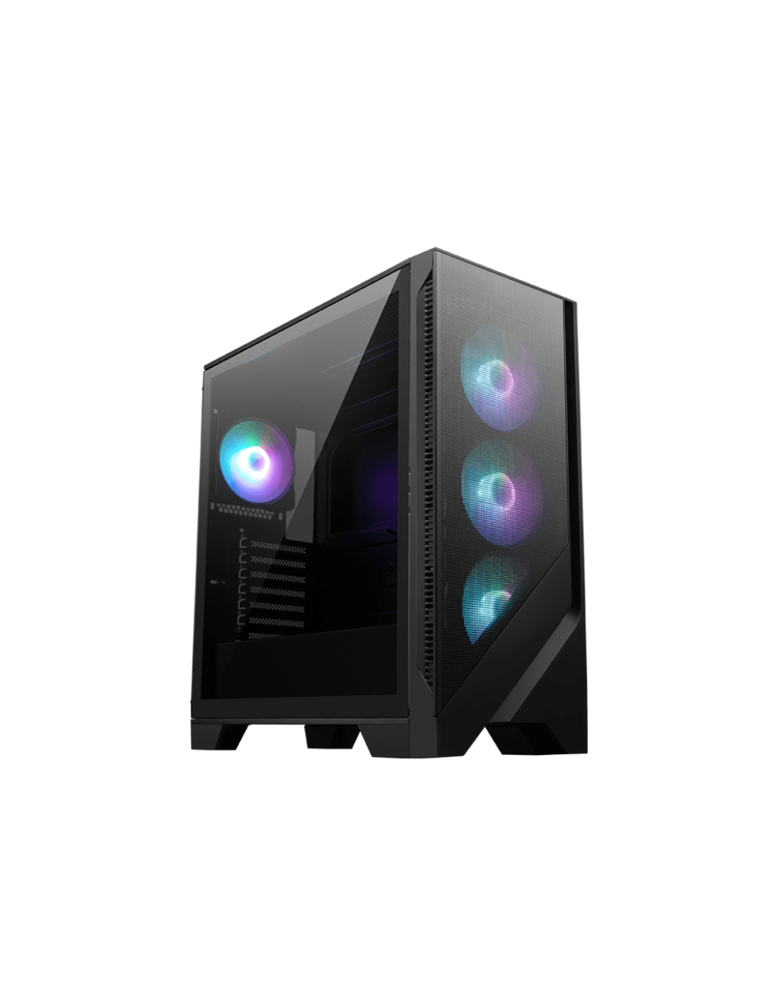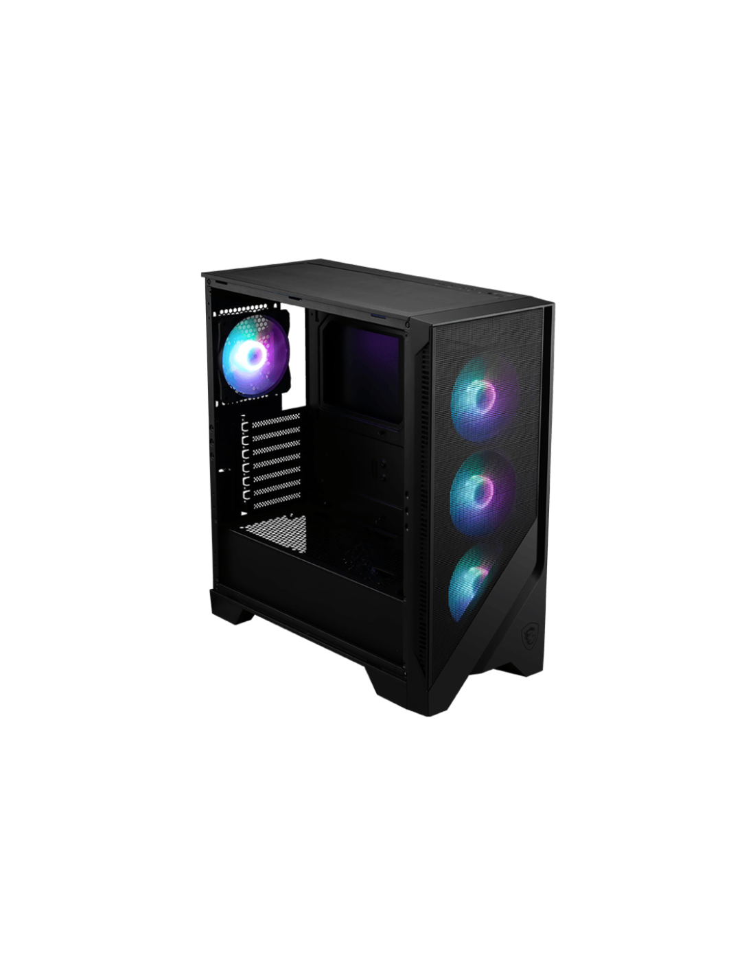 MSI MAG Forge 320R AIRFLOW. Factor de forma: Micro Torre, Tipo: PC, Color del producto: Negro, Transparente. Ubicación de fuente de alimentación: Fondo. Ventiladores frontales instalados: 3x 120 mm, Diámetro de ventiladores frontales soportados: 120,140 mm, Diámetro de ventiladores secundarios soportados: 120 mm. Tamaños de disco duro soportados: 2.5,3.5". Ancho: 472,5 mm, Profundidad: 210 mm, Altura: 498 mm