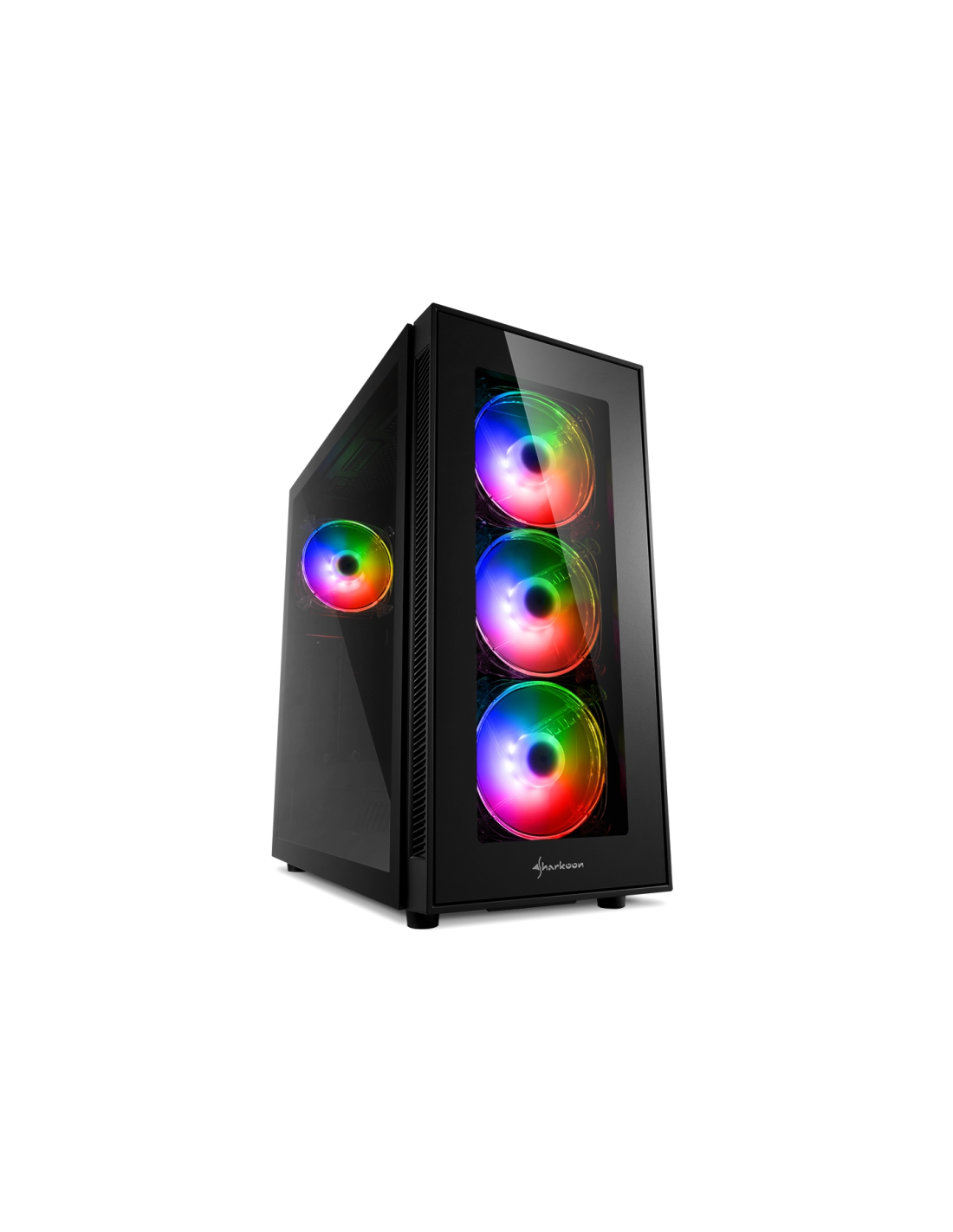 Sharkoon TG5 Pro RGB. Factor de forma: Midi Tower, Tipo: PC, Color del producto: Negro. Ubicación de fuente de alimentación: Fondo. Ventiladores frontales instalados: 3x 120 mm, Diámetro de ventiladores frontales soportados: 120 mm, Ventiladores traseros instalados: 1x 120 mm. Tamaños de disco duro soportados: 2.5,3.5". Ancho: 215 mm, Profundidad: 452 mm, Altura: 465 mm