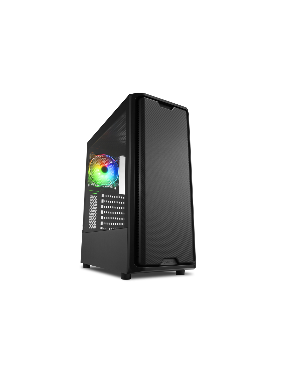 Una caja compacta con elegantes detalles: la SK3 RGB es una semitorre ATX visualmente discreta que se puede integrar óptimamente en setups minimalistas. No obstante, presenta algunos aspectos atractivos visualmente con su forma clara y ordenada, así también gracias a su panel frontal con una apariencia de fibra de carbono. La caja también incorpora un panel lateral fabricado en cristal templado. A través de éste, es posible visualizar el interior, iluminado por un ventilador preinstalado LED RGB de 120 mm.