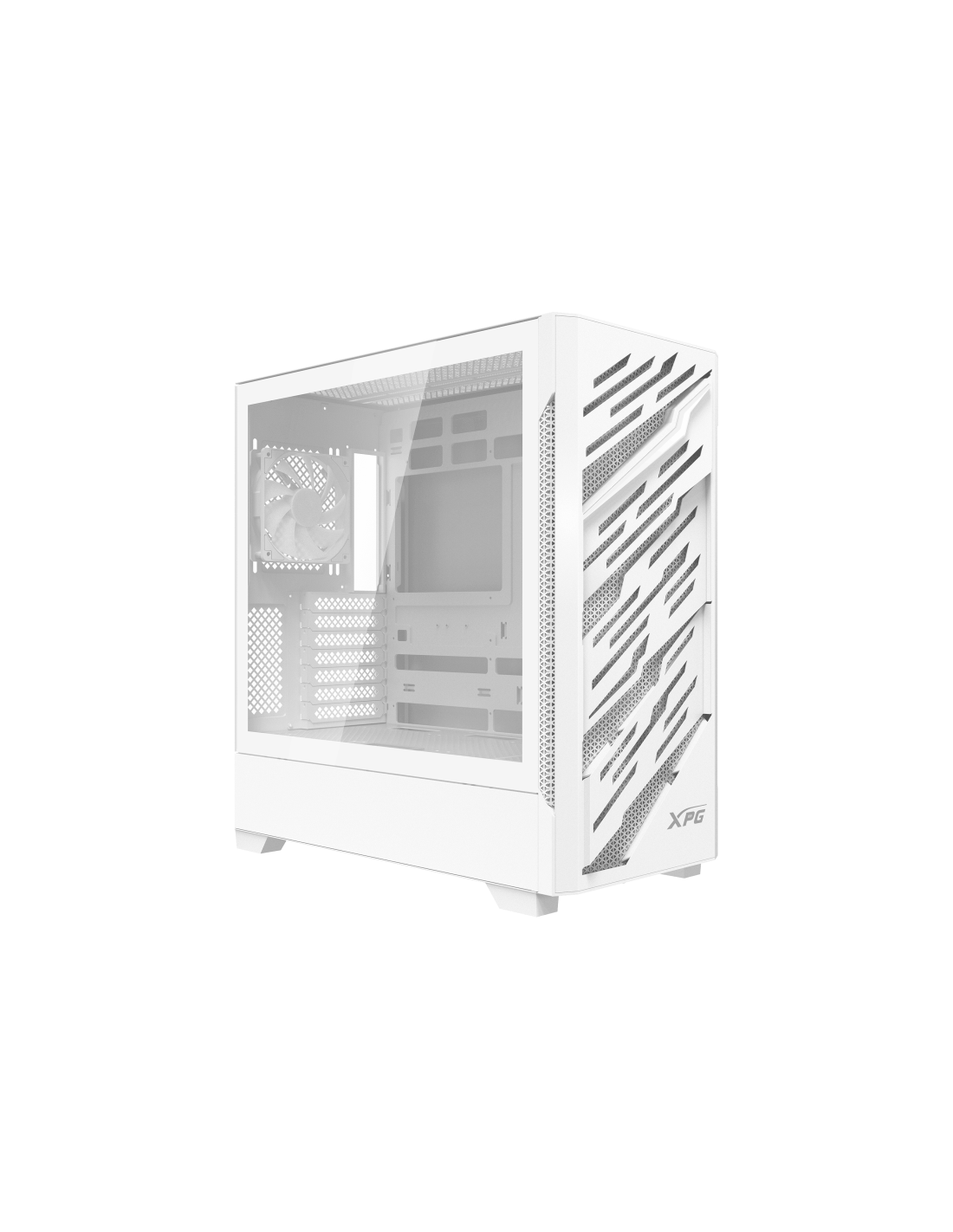 XPG STARKER AIR BTF Torre Media Blanca. Factor de forma: Midi Tower, Tipo: PC, Color del producto: Blanco. Diámetro de ventiladores frontales soportados: 120,140 mm, Diámetro de ventiladores secundarios soportados: 120 mm, Diámetro de ventiladores traseros soportados: 120 mm. Ancho: 242 mm, Profundidad: 464 mm, Altura: 496 mm