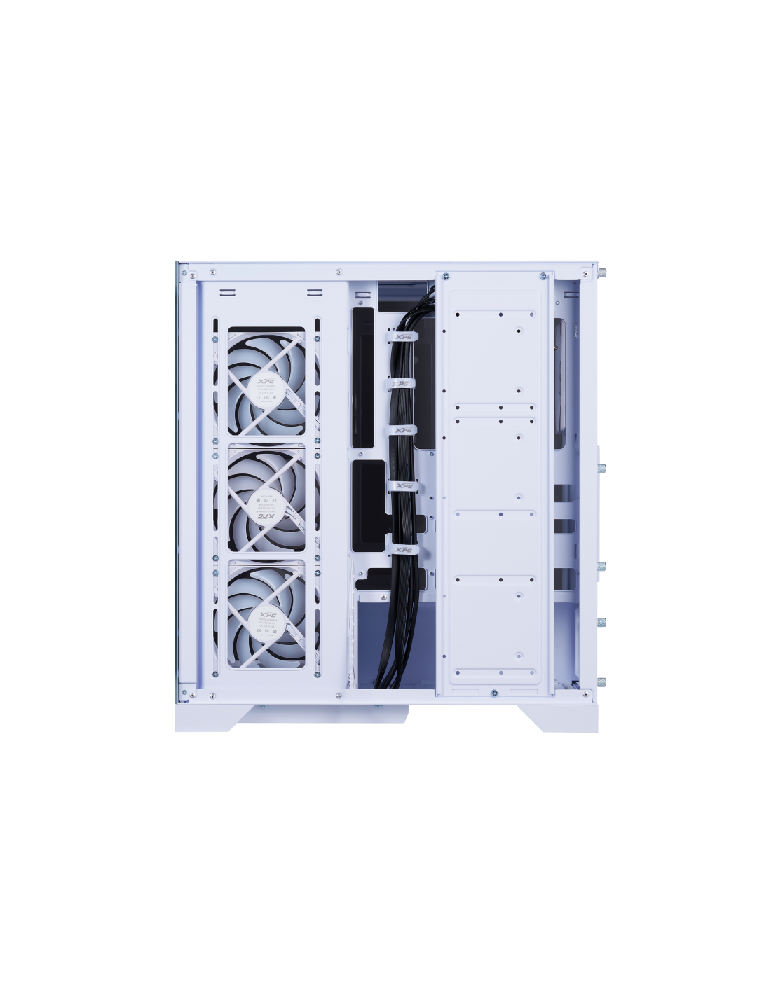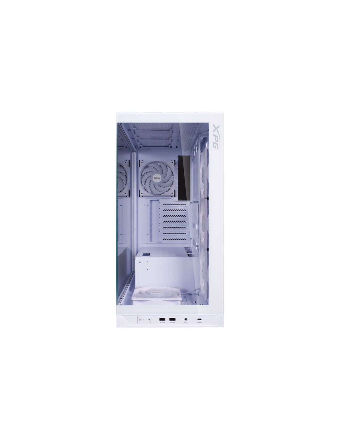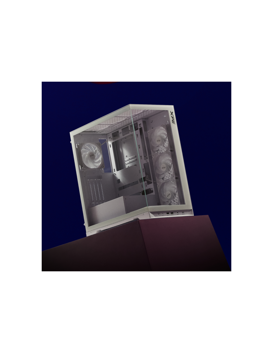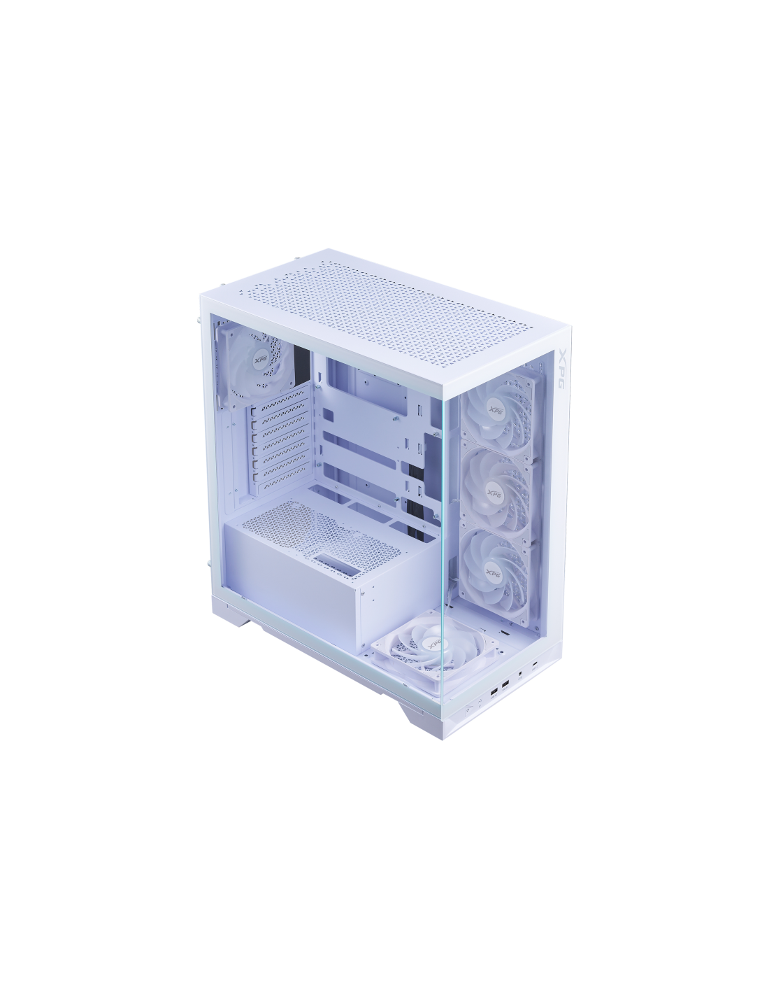 El nuevo chasis con vista al mar de XPG se caracteriza por su compatibilidad con las últimas placas base ATX de conector inverso, proporcionando la plataforma definitiva para mostrar su mejor gestión del cableado. Equipado con cuatro ventiladores invertidos preinstalados y un ventilador estándar, garantiza un rendimiento de flujo de aire óptimo a la vez que mantiene una estética elegante desde todos los ángulos.