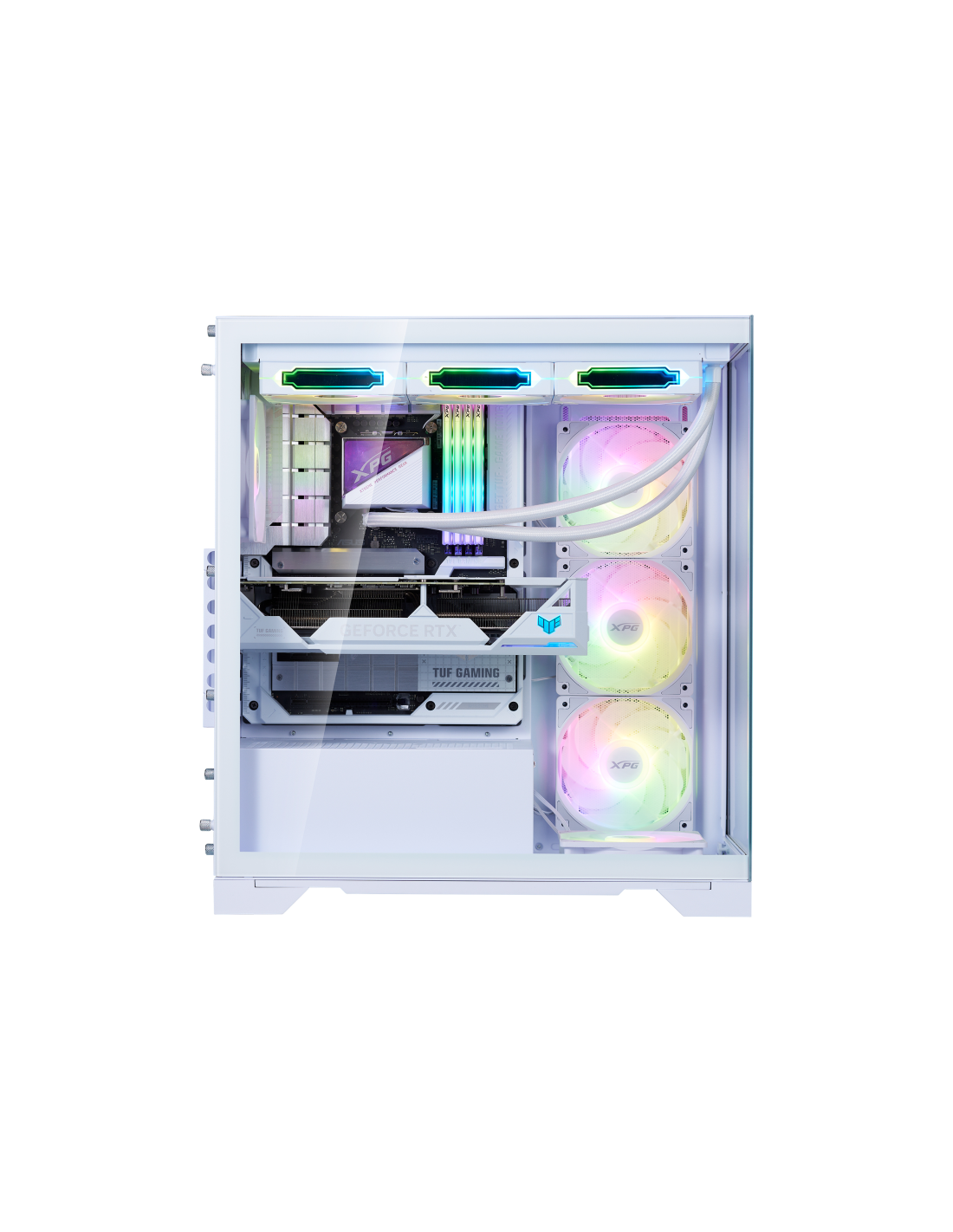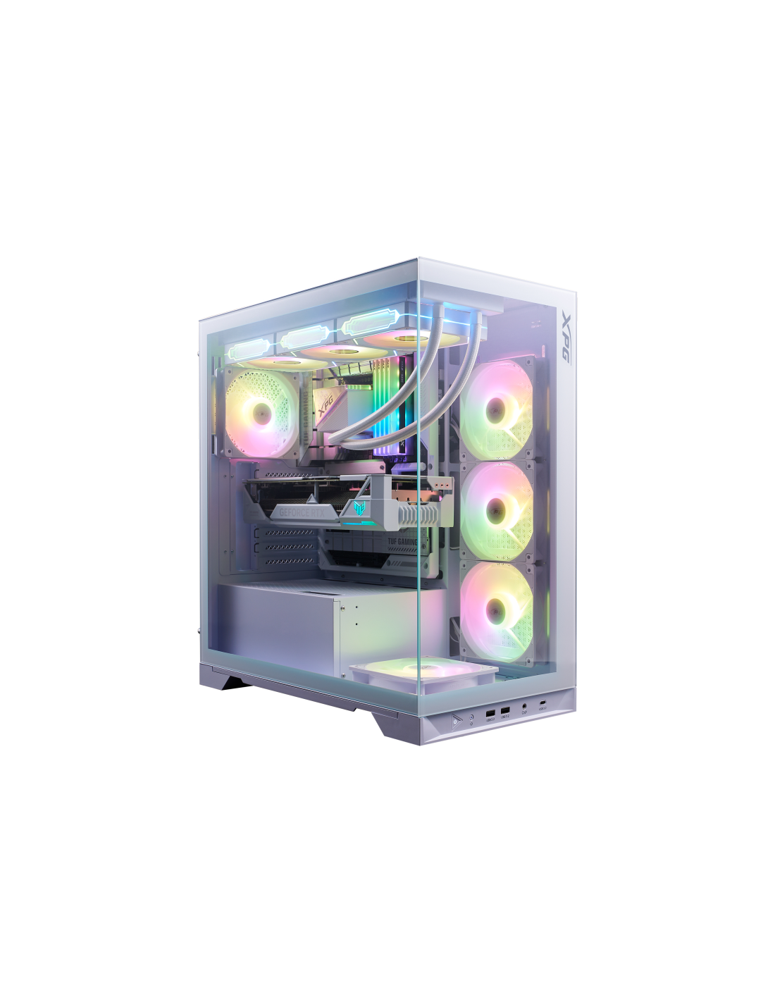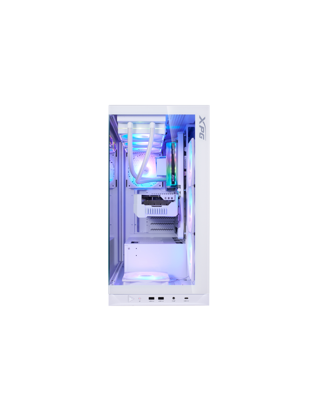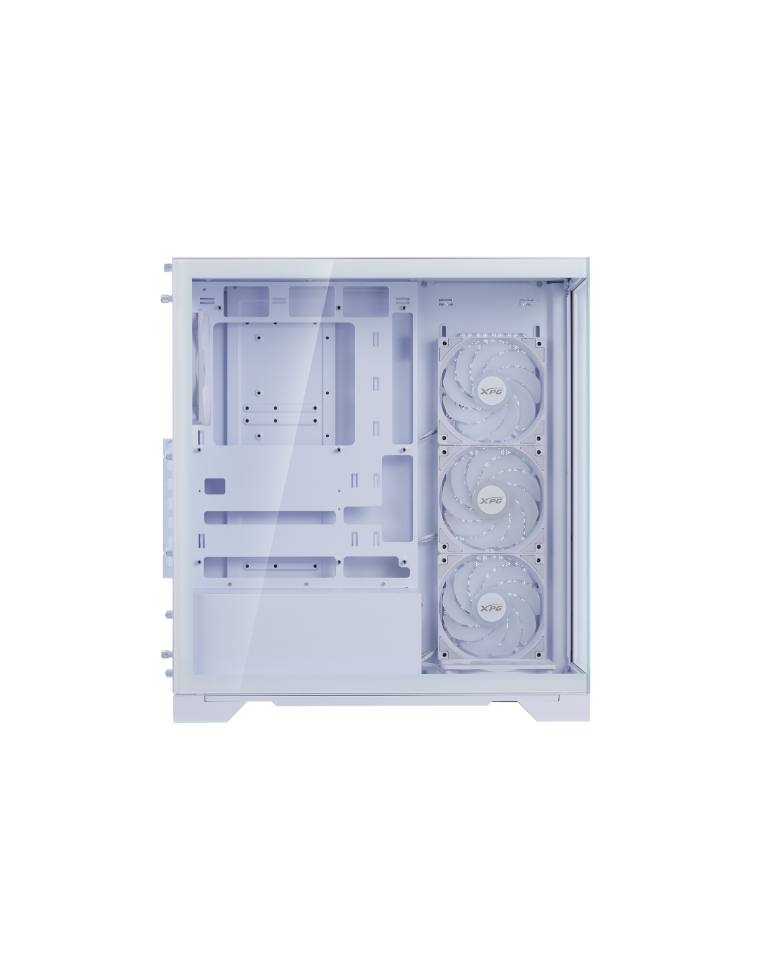 El nuevo chasis con vista al mar de XPG se caracteriza por su compatibilidad con las últimas placas base ATX de conector inverso, proporcionando la plataforma definitiva para mostrar su mejor gestión del cableado. Equipado con cuatro ventiladores invertidos preinstalados y un ventilador estándar, garantiza un rendimiento de flujo de aire óptimo a la vez que mantiene una estética elegante desde todos los ángulos.