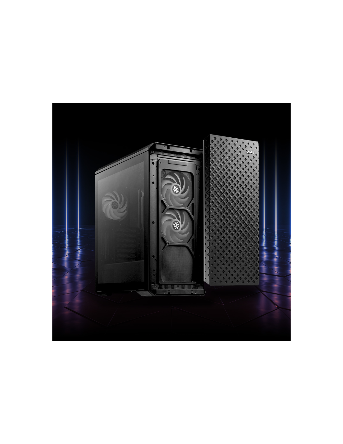 El chasis de media torre XPG DEFENDER PRO está disponible en los colores blanco y negro. Su diseño de corte fino geométrico MESH es estéticamente elegante y aerodinámicamente eficiente para mejorar la entrada del flujo de aire.