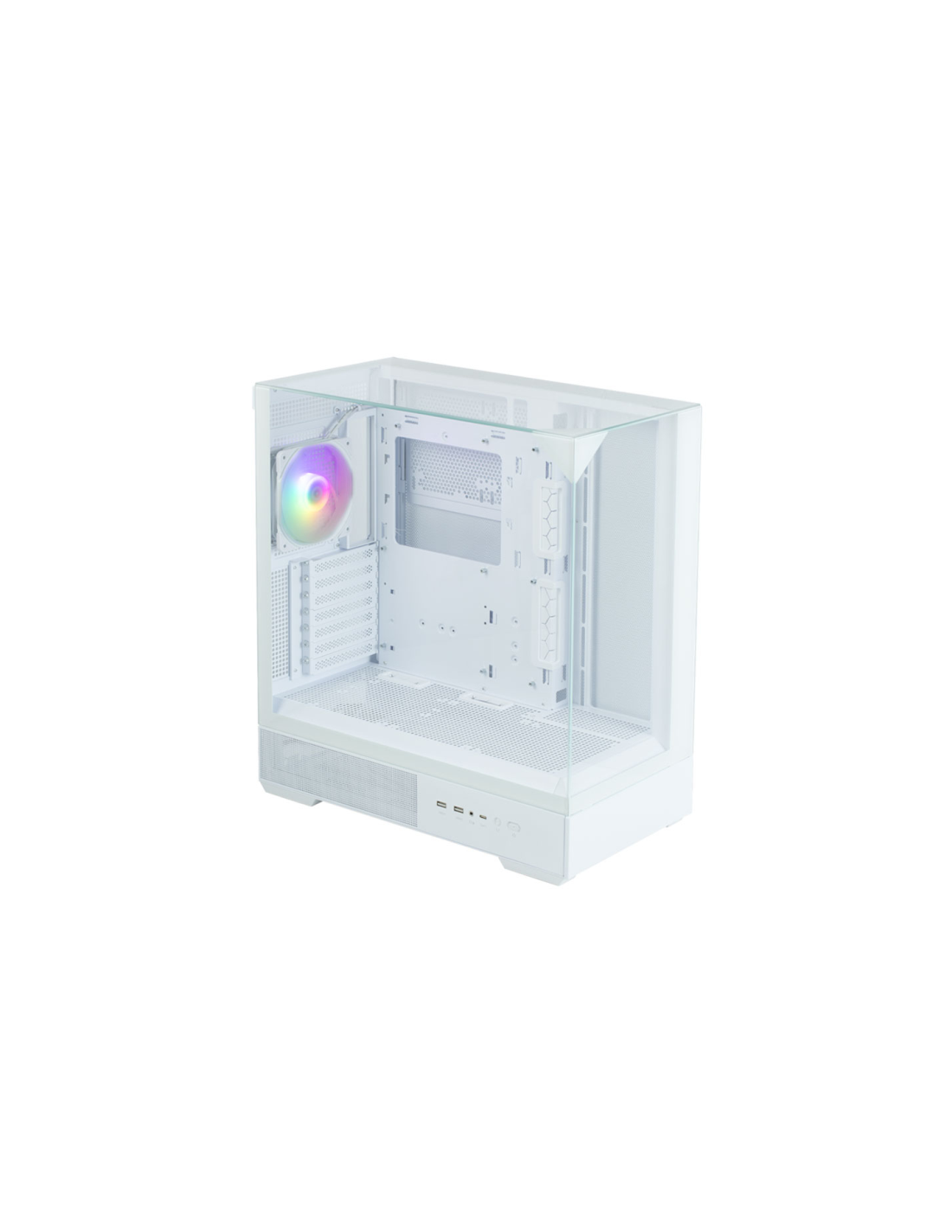 Zalman P40 Prism White. Factor de forma: Midi Tower, Tipo: PC, Color del producto: Blanco. Diámetro de ventiladores secundarios soportados: 120 mm, Ventiladores traseros instalados: 1x 120 mm, Diámetro de ventiladores traseros soportados: 120 mm. Tamaños de disco duro soportados: 2.5,3.5". Ancho: 235 mm, Profundidad: 452 mm, Altura: 495 mm. País de origen: Corea del Sur
