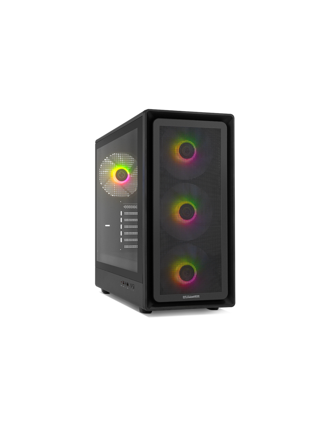 Su frontal mesh, con 3 ventiladores incluidos, ofrece un extra de ventilación que ayuda con la compleja tarea de mantener el PC a temperaturas óptimas cuando alcanza su rendimiento máximo. Además, con su cristal templado lateral podrás apreciar tu configuración en todo su esplendor.