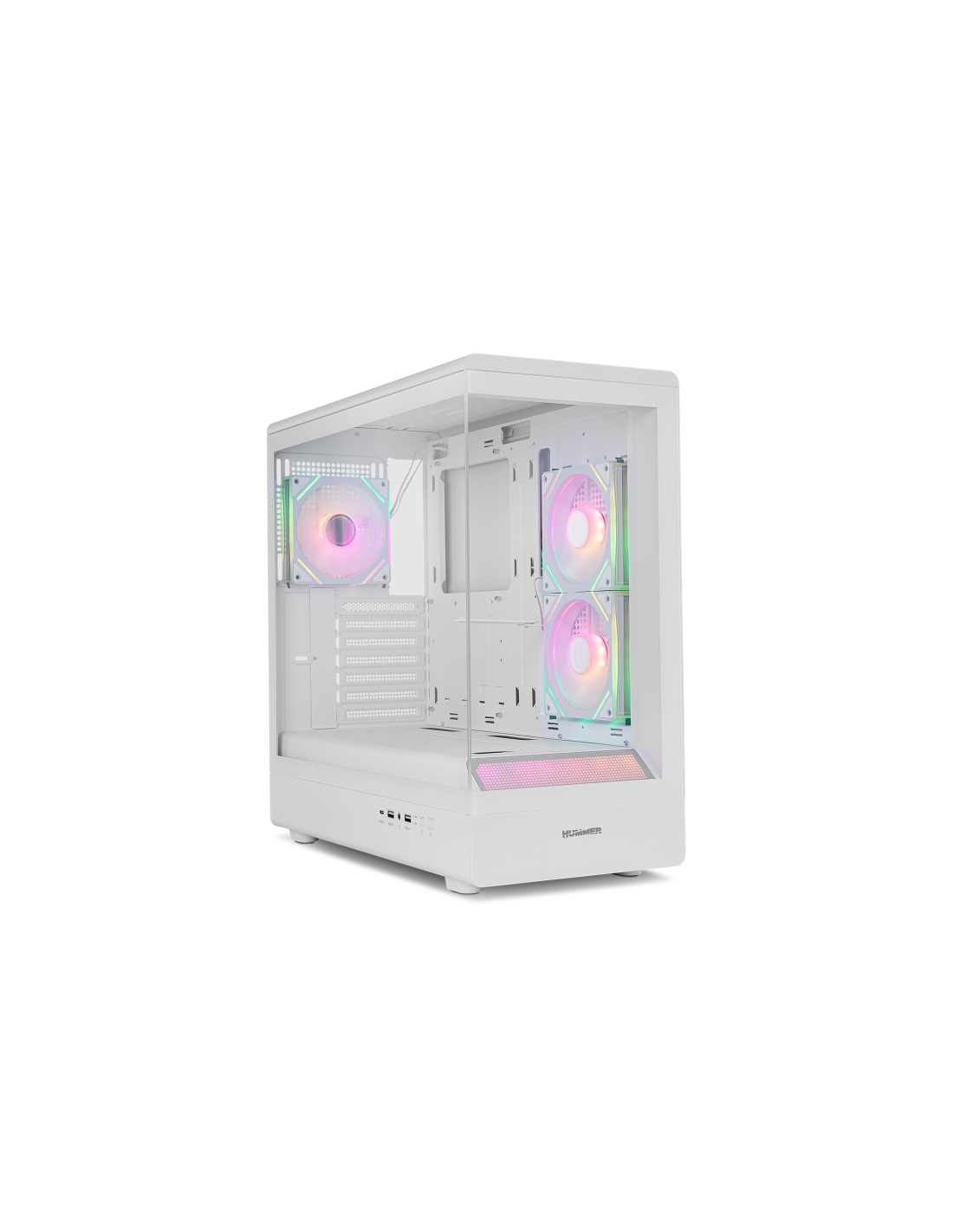Nox Hummer Signal es una semitorre con frontal panorámico que incluye 3 ventiladores e incorpora en su frontal una zona ARGB que le dará un toque distintivo a tu setup. Este chasis de Nox ha sido diseñado para dotar de personalidad a tu ordenador gamer. Compatible con gráficas de gran tamaño, hasta 420 mm, lo que permite montar gráficas de última generación.
