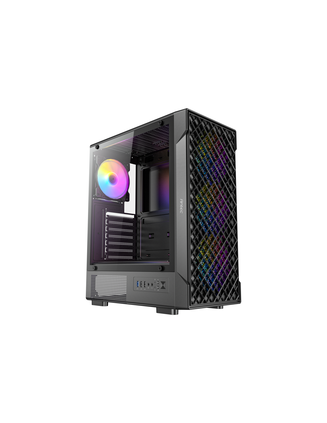 Antec VX-320 ARGB. Factor de forma: Midi Tower, Tipo: PC, Color del producto: Negro. Ubicación de fuente de alimentación: Fondo. Ventiladores frontales instalados: 3x 120 mm, Ventiladores traseros instalados: 1x 120 mm, Diámetros de ventiladores superiores soportados: 120,140 mm. Tamaños de disco duro soportados: 2.5,3.5". Ancho: 205 mm, Profundidad: 370 mm, Altura: 450 mm
