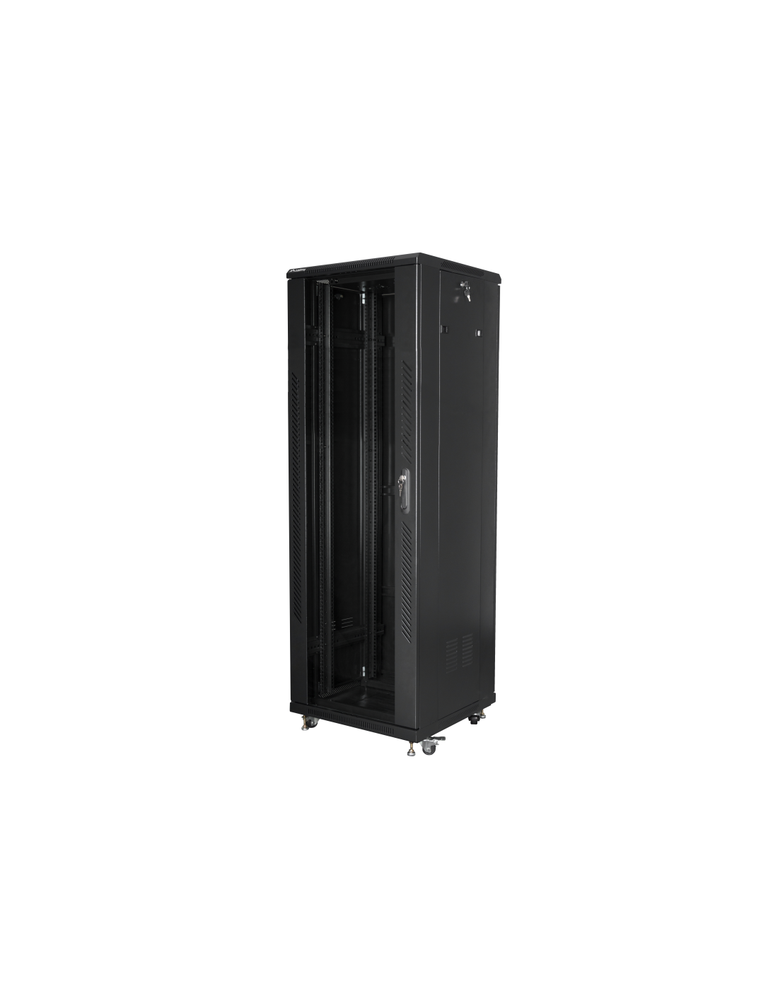 Lanberg FF01-6637-12B. Tipo: Rack o bastidor independiente, Capacidad del rack: 37U, Capacidad máxima de peso: 800 kg, Bloqueo del teclado, Patas ajustables, Rieles de rack, Código IP (International Protection): IP20, Rueda de reenvio. Peso: 78 kg. Color del producto: Negro
