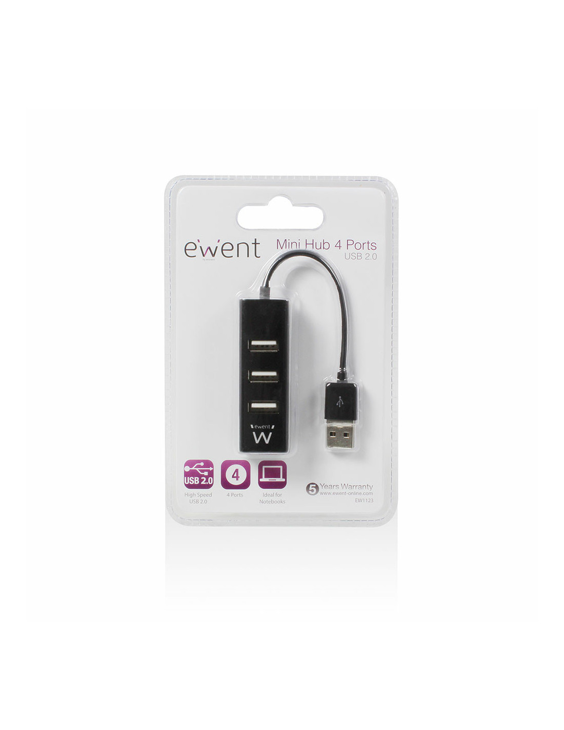 Ewent EW1123 concentrador d'interfície USB 2.0 480 Mbit/s Negre