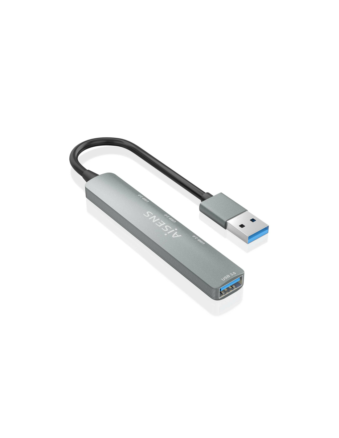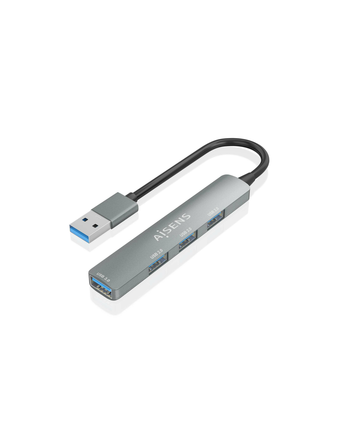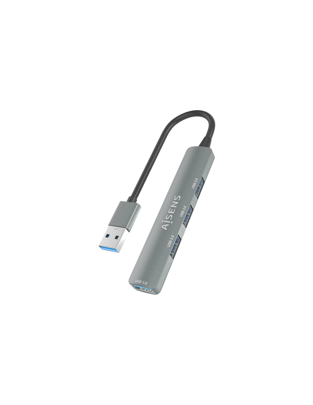 AISENS® – HUB USB 3.0 Aluminio, 1xUSB3.0 A/H+3xUSB2.0 A/H, Gris, 10cm