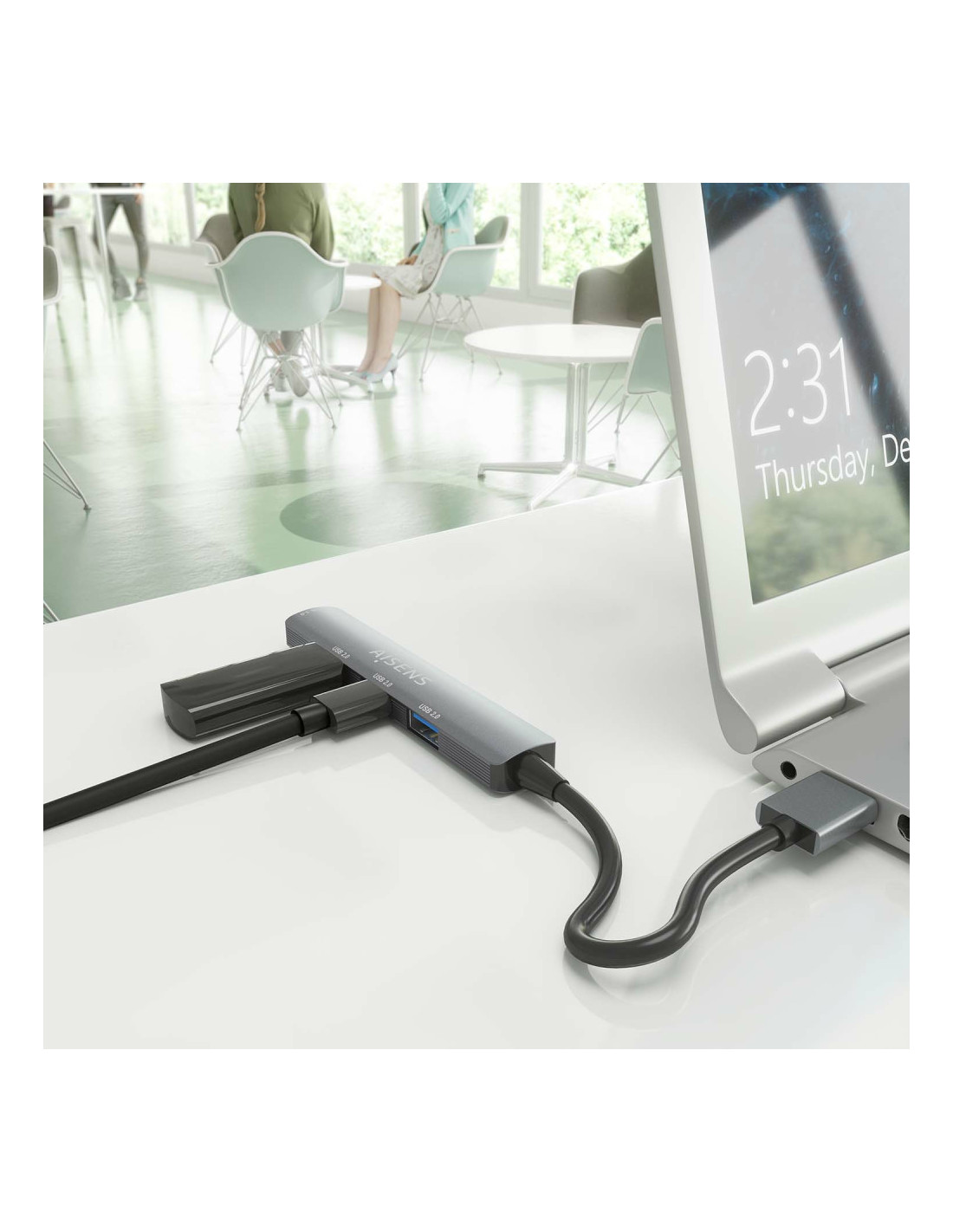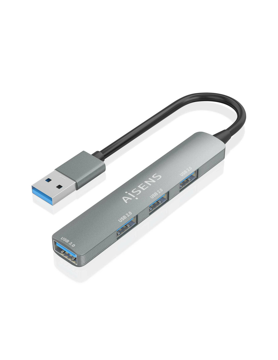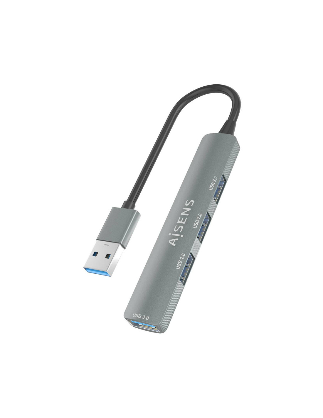 AISENS® – HUB USB 3.0 Aluminio, 1xUSB3.0 A/H+3xUSB2.0 A/H, Gris, 10cm
