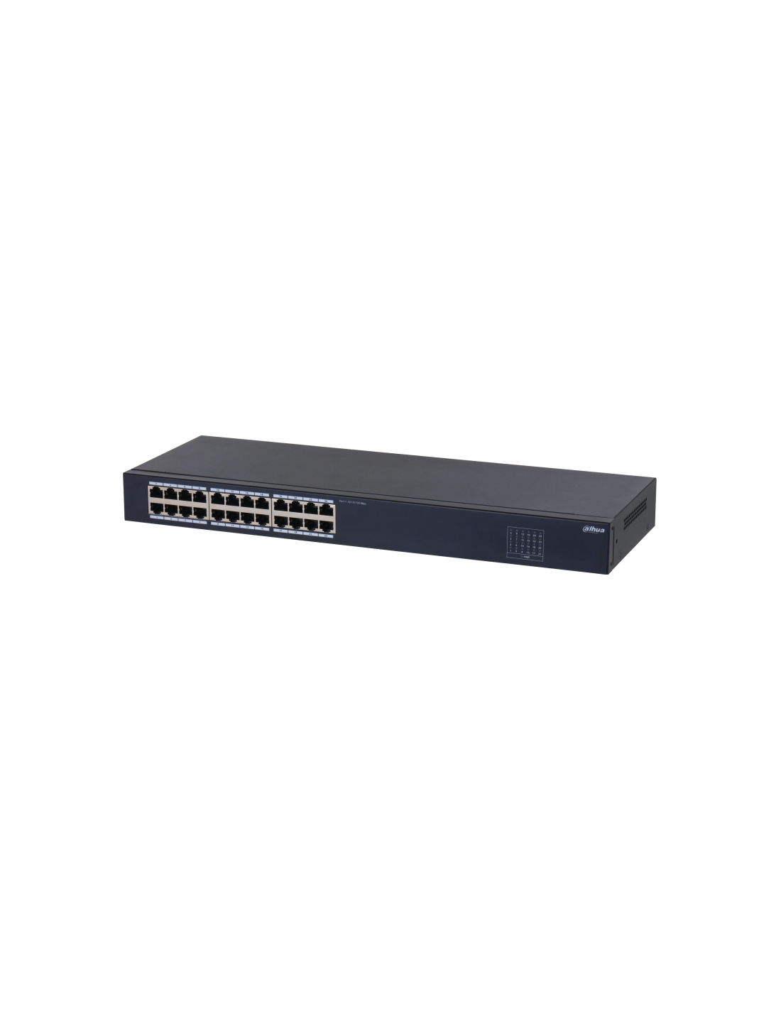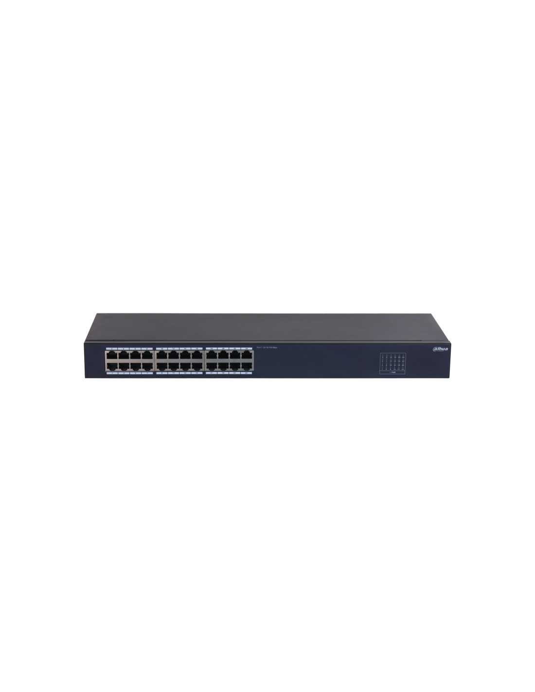 Dahua Technology SF1024. Tipo de interruptor: No administrado, Capa del interruptor: L2. Puertos tipo básico de conmutación RJ-45 Ethernet: Fast Ethernet (10/100), Cantidad de puertos básicos de conmutación RJ-45 Ethernet: 24. Tabla de direcciones MAC: 8000 entradas, Capacidad de conmutación: 4,8 Gbit/s. Estándares de red: IEEE 802.3, IEEE 802.3u, IEEE 802.3x. Montaje en rack