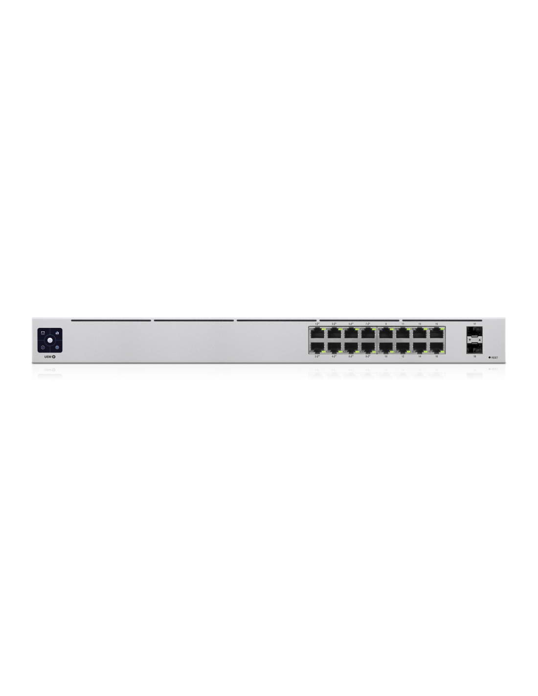 Ubiquiti UniFi 16-Port PoE. Tipo de interruptor: Gestionado, Capa del interruptor: L2/L3. Puertos tipo básico de conmutación RJ-45 Ethernet: Gigabit Ethernet (10/100/1000), Cantidad de puertos básicos de conmutación RJ-45 Ethernet: 16. Bidireccional completo (Full duplex). Capacidad de conmutación: 36 Gbit/s. Estándares de red: IEEE 802.3af, IEEE 802.3at. Voltaje de entrada DC: 44 - 57 V. Energía sobre Ethernet (PoE). Montaje en rack, Factor de forma: 1U