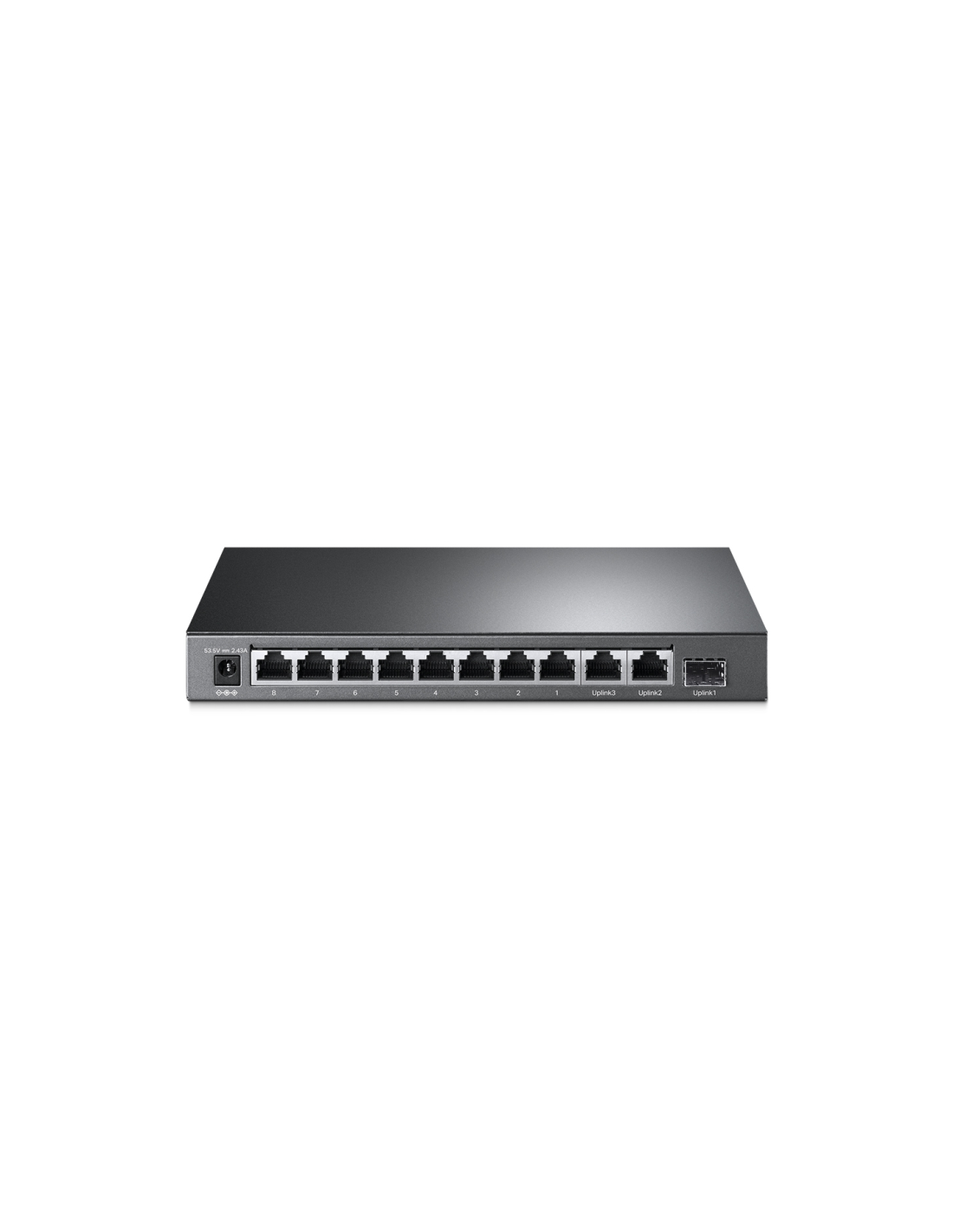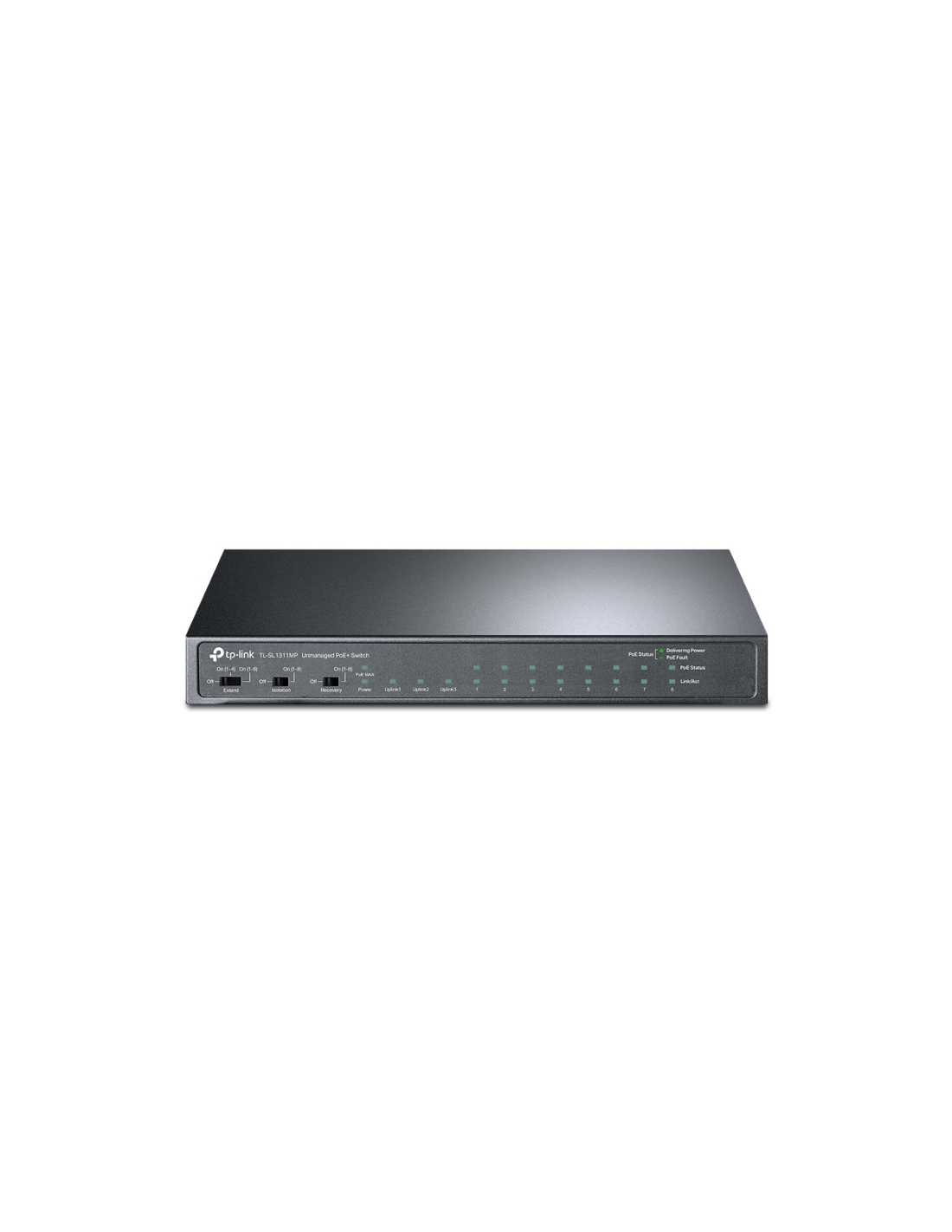 TP-Link TL-SL1311MP. Tipo de interruptor: No administrado. Puertos tipo básico de conmutación RJ-45 Ethernet: Fast Ethernet (10/100), Cantidad de puertos básicos de conmutación RJ-45 Ethernet: 10. Tabla de direcciones MAC: 2000 entradas, Capacidad de conmutación: 7,6 Gbit/s. Estándares de red: IEEE 802.3af, IEEE 802.3at. Voltaje de entrada DC: 53.5 V. Conector eléctrico: Toma de entrada de CC. Energía sobre Ethernet (PoE)