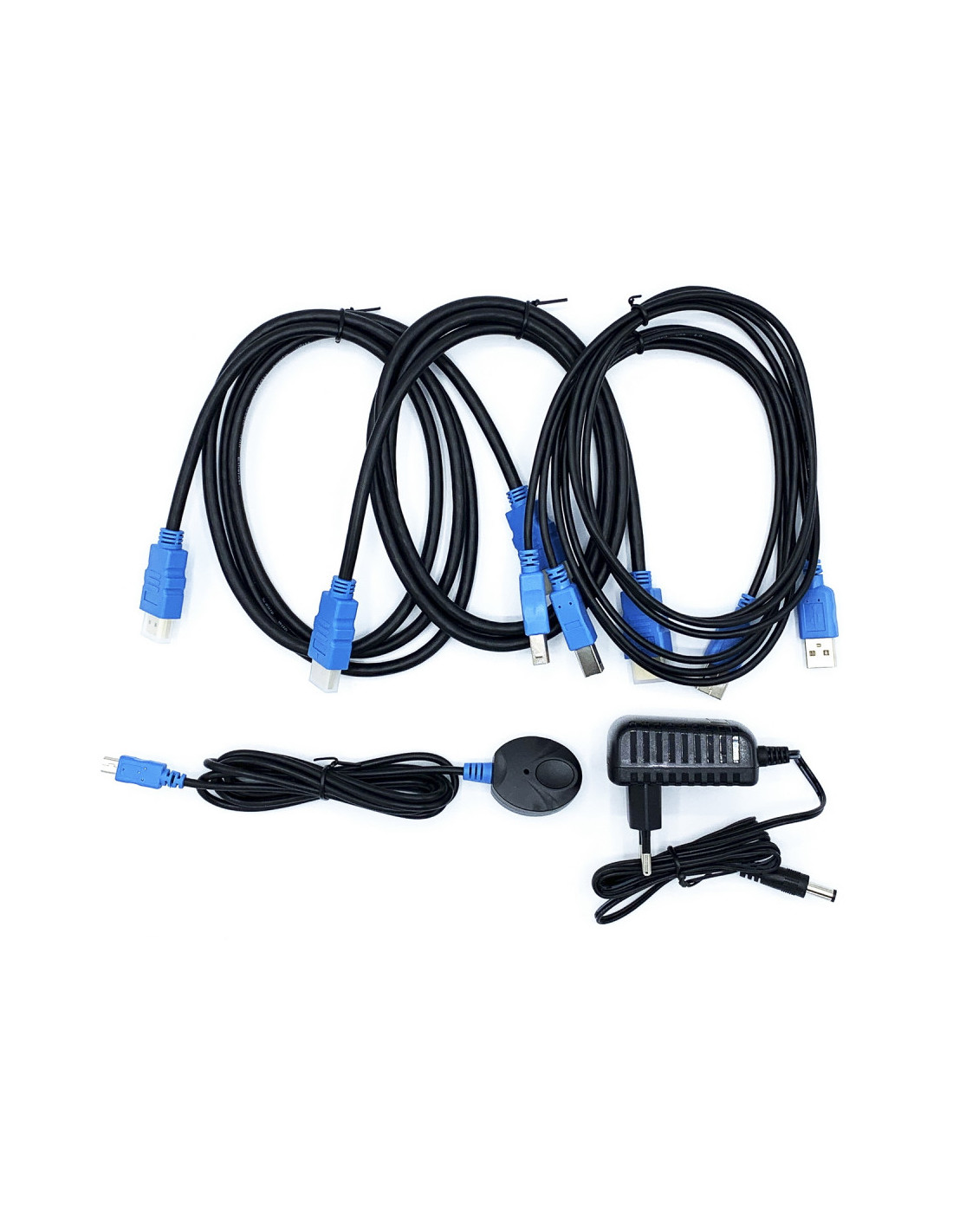 Requisitos mínimos de sistema: Monitor con conexión HDMI, teclado y ratón USB, 2 ordenadores (PC u ordenador portátil) con puerto USB 1.1 o 2.0 y puerto HDMI