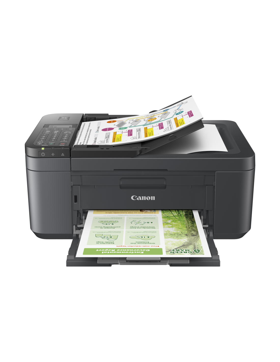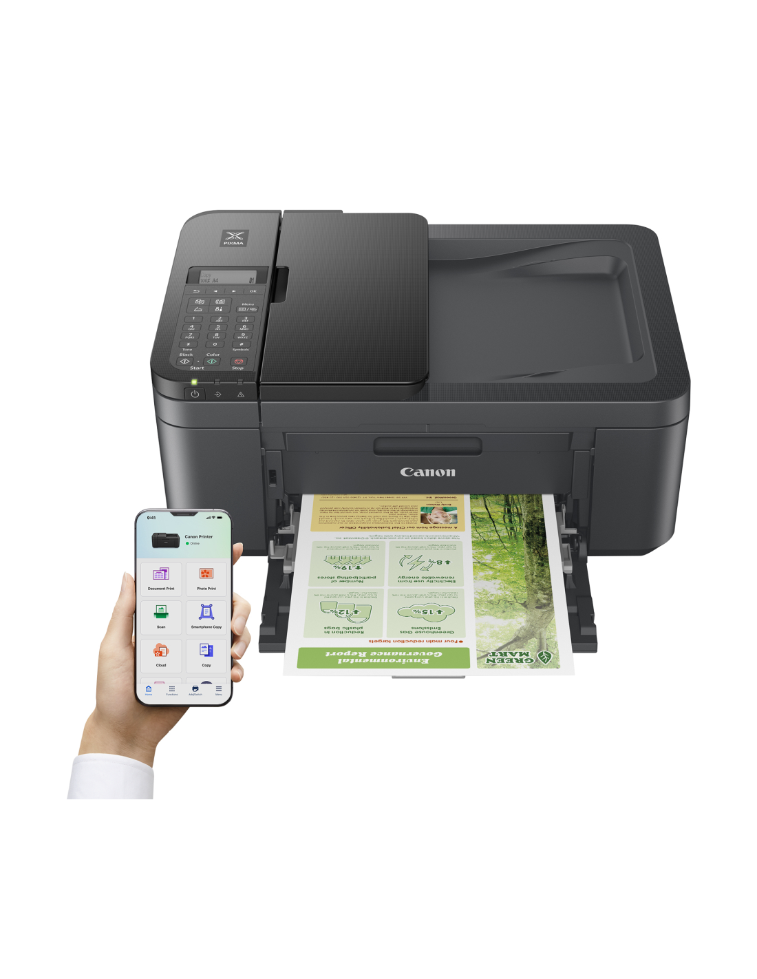 Canon PIXMA TR4755i. Tecnología de impresión: Inyección de tinta, Impresión: Impresión a color, Resolución máxima: 4800 x 1200 DPI. Copiando: Copia a color. Escaneando: Escaneo a color, Resolución óptica de escáner: 600 x 1200 DPI. Enviando por fax: Fax a color. Funciones dúplex: Copiar, Imprimir. Tamaño máximo de papel ISO A-series: A4. Wifi. Impresión directa. Color del producto: Negro