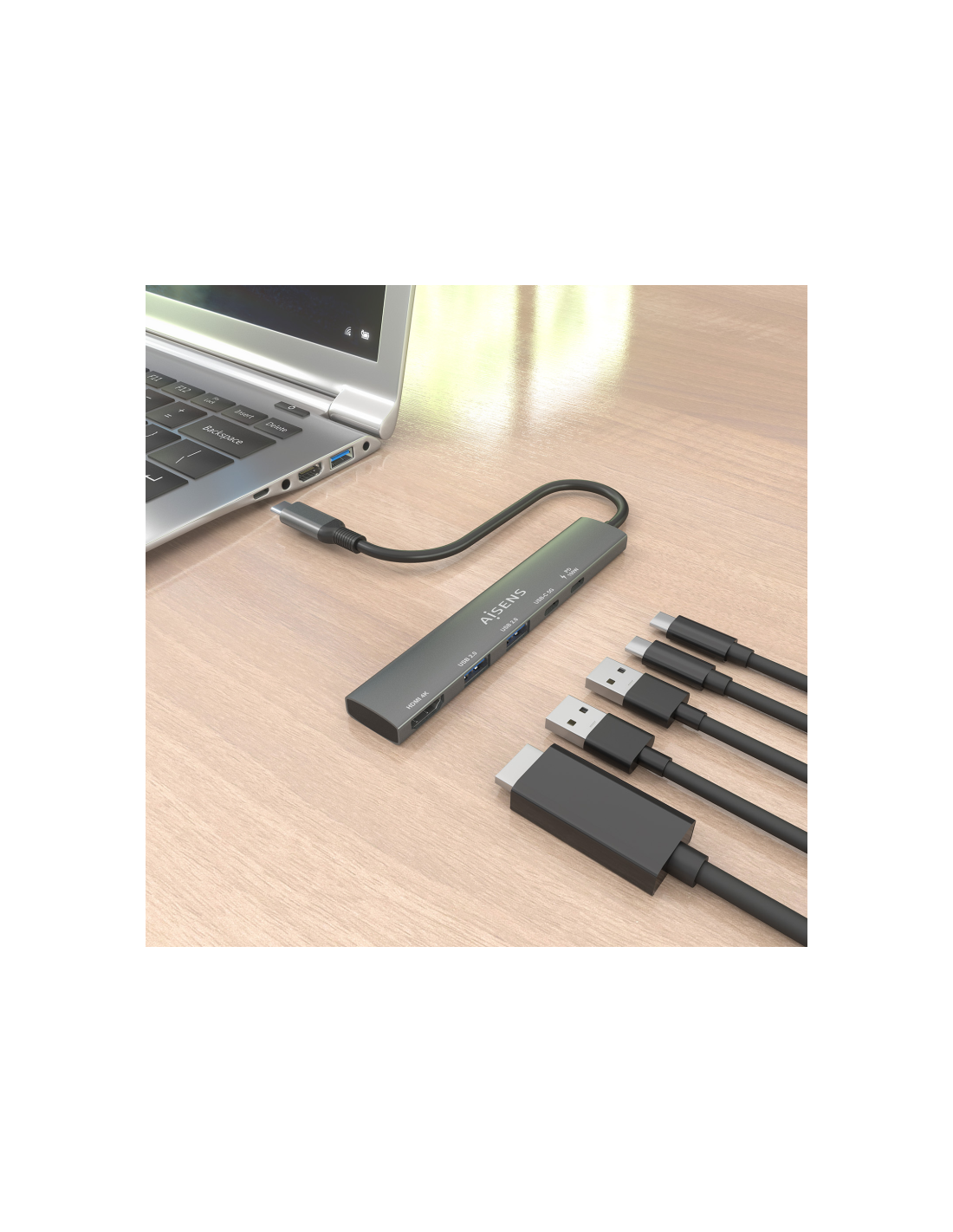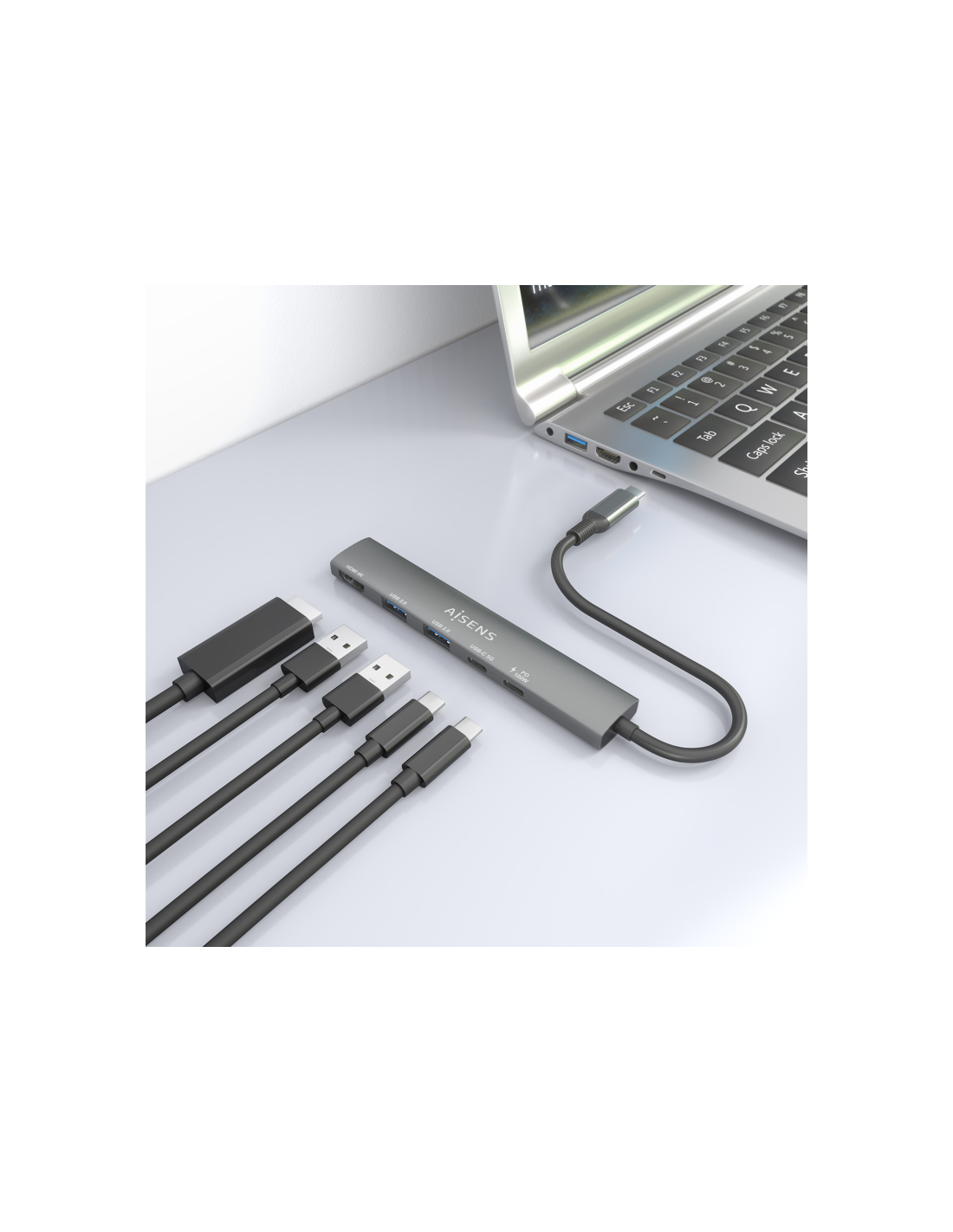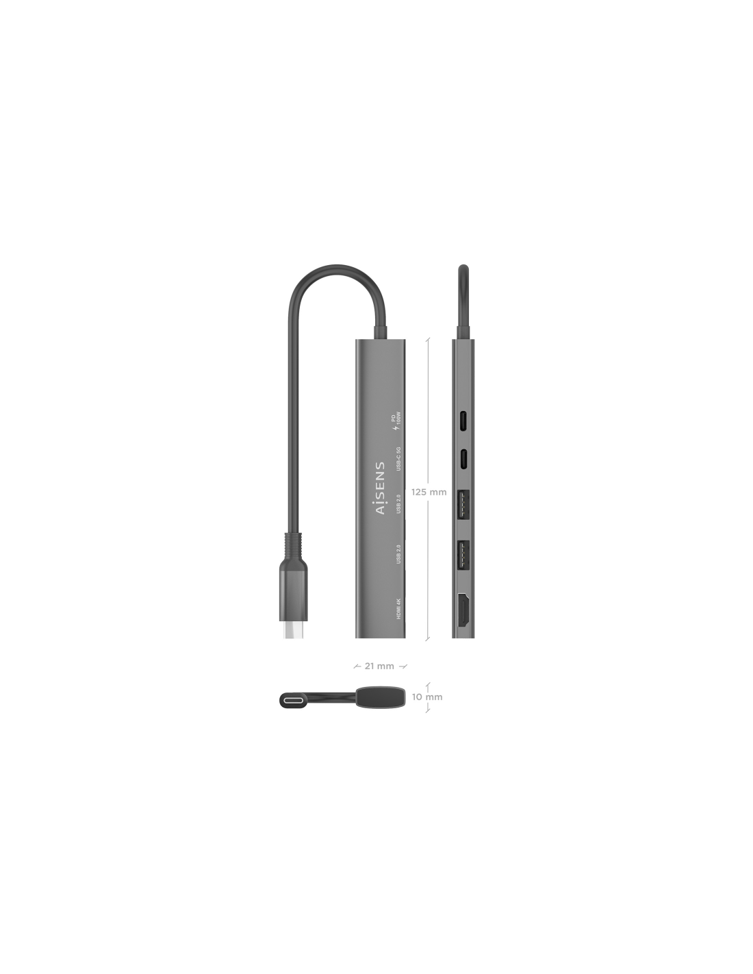 AISENS ASUC-5P022-GR base para portátil y replicador de puertos Alámbrico USB 3.2 Gen 1 (3.1 Gen 1) Type-C