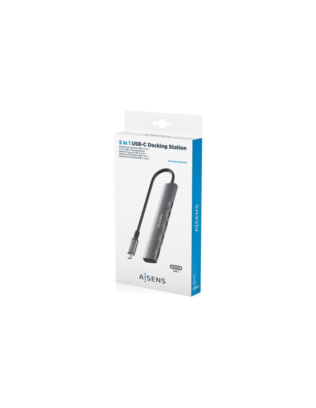 AISENS USB-C Dock 5 en 1, USB-C A, 1x HDMI 2x USB-A, 1x USB-C, 1x USB-C PD, Gris, 15cm. Tecnología de conectividad: Alámbrico, Interfaz de host: USB 3.2 Gen 1 (3.1 Gen 1) Type-C, Entrega de energía USB (USB Power Delivery) de hasta: 100 W. Color del producto: Gris, Velocidad de transferencia de datos: 5 Gbit/s, Resolución (máxima digital): 3840 x 2160 Pixeles. Alimentación: USB, Conector eléctrico: USB Tipo C, Longitud del cable USB: 0,15 m. Cantidad por paquete: 1 pieza(s), Ancho del paquete: 173 mm, Profu