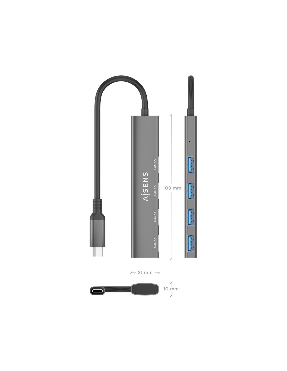 AISENS A109-0943 Replicador de port i moll portàtil Cablejat USB 3.2 Gen 1 (3.1 Gen 1) Type-C Gris