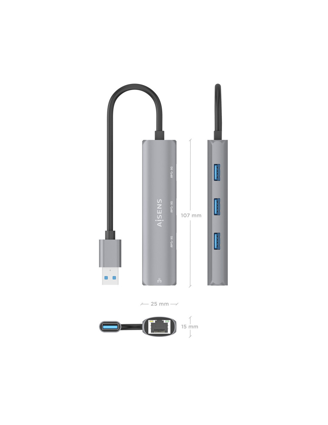 AISENS ASUC-4P034-GR Replicador de port i moll portàtil Cablejat USB 3.2 Gen 1 (3.1 Gen 1) Type-A Gris