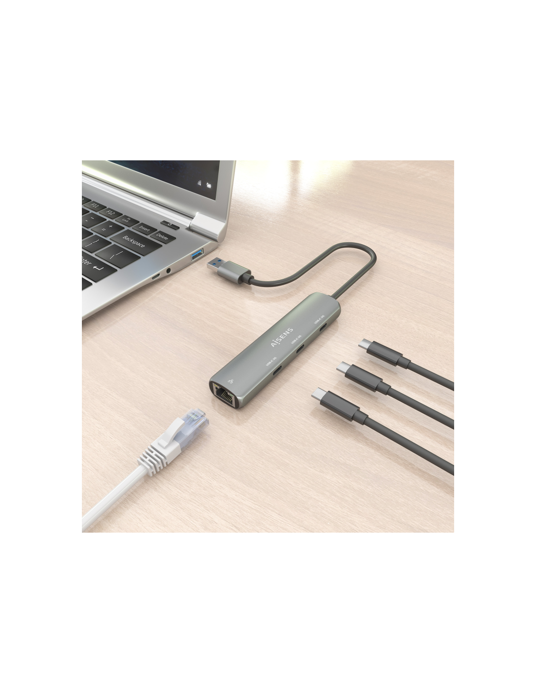 AISENS USB3.0 Dock USB-A A Ethernet Gigabit + Hub 3xUSB-C, Gris, 15cm