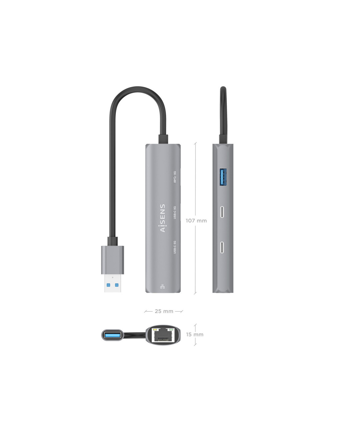 AISENS ASUC-4P036-GR Replicador de port i moll portàtil Cablejat USB 3.2 Gen 1 (3.1 Gen 1) Type-A Gris