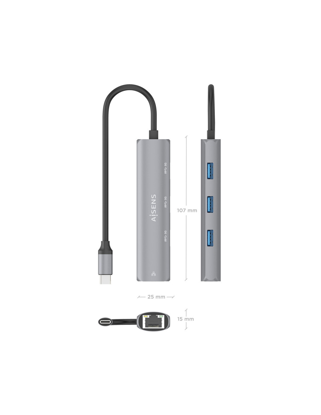 AISENS ASUC-4P038-GR Replicador de port i moll portàtil Cablejat USB 3.2 Gen 1 (3.1 Gen 1) Type-C Gris