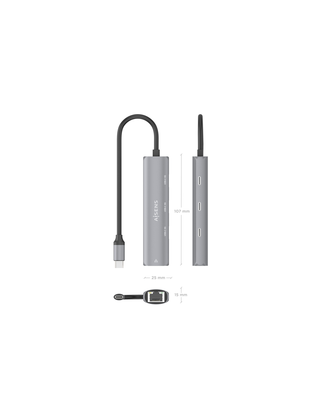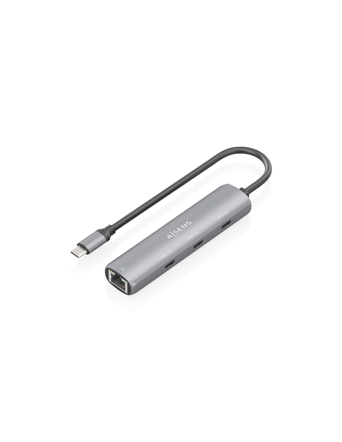 AISENS Dock USB-C A Ethernet Gigabit + Hub 3xUSB-C, Gris, 15cm. Tecnología de conectividad: Alámbrico, Interfaz de host: USB 3.2 Gen 1 (3.1 Gen 1) Type-C. Ethernet LAN, velocidad de transferencia de datos: 10,100,1000 Mbit/s, Estándares de red: IEEE 802.3, IEEE 802.3ab, IEEE 802.3u. Color del producto: Gris. Alimentación: USB, Conector eléctrico: USB Tipo C, Longitud del cable USB: 0,15 m. Sistema operativo Windows soportado: Windows 10, Windows 11