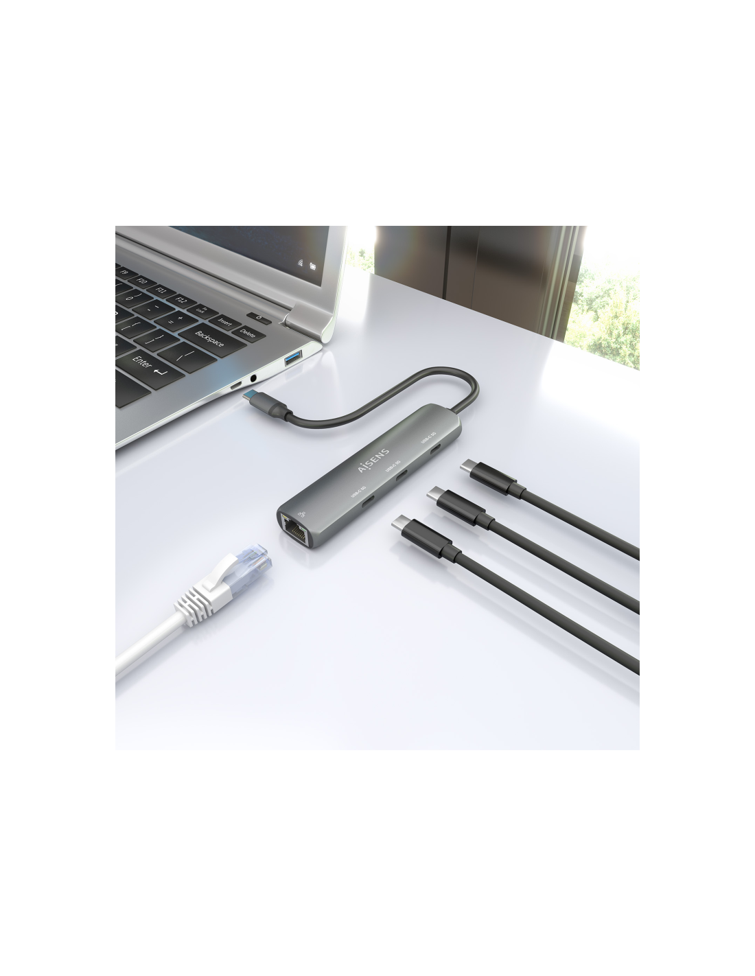 AISENS Dock USB-C A Ethernet Gigabit + Hub 3xUSB-C, Gris, 15cm