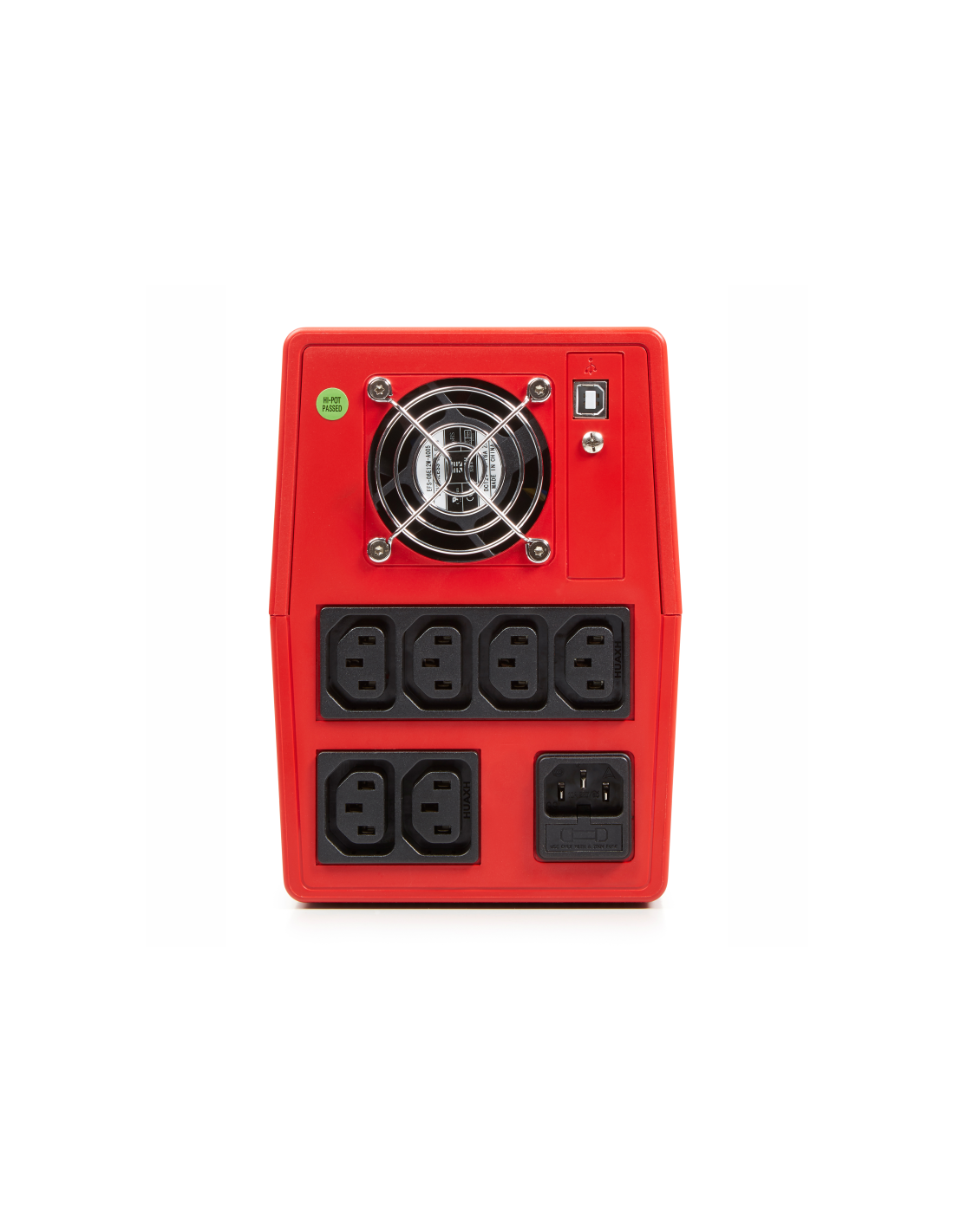 Salicru SPS 1500 ONE IEC. Topología UPS: Línea interactiva, Capacidad de potencia de salida (VA): 1,5 kVA, Potencia de salida: 900 W. Tipo de salida AC: C13 acoplador, Cantidad de salidas AC: 6 salidas AC, Tipo de puerto USB: USB Tipo B. Tecnología de batería: Plomo-Calcio (Pb-Ca), Tiempo típico de respaldo a carga completa: 20 min, Vida útil de la batería (máx.): 5 año(s). Factor de forma: Torre, Color del producto: Rojo, Blanco. Certificación: EN-IEC 62040-12, EN-IEC 62040-12, ISO 9001, ISO 14001