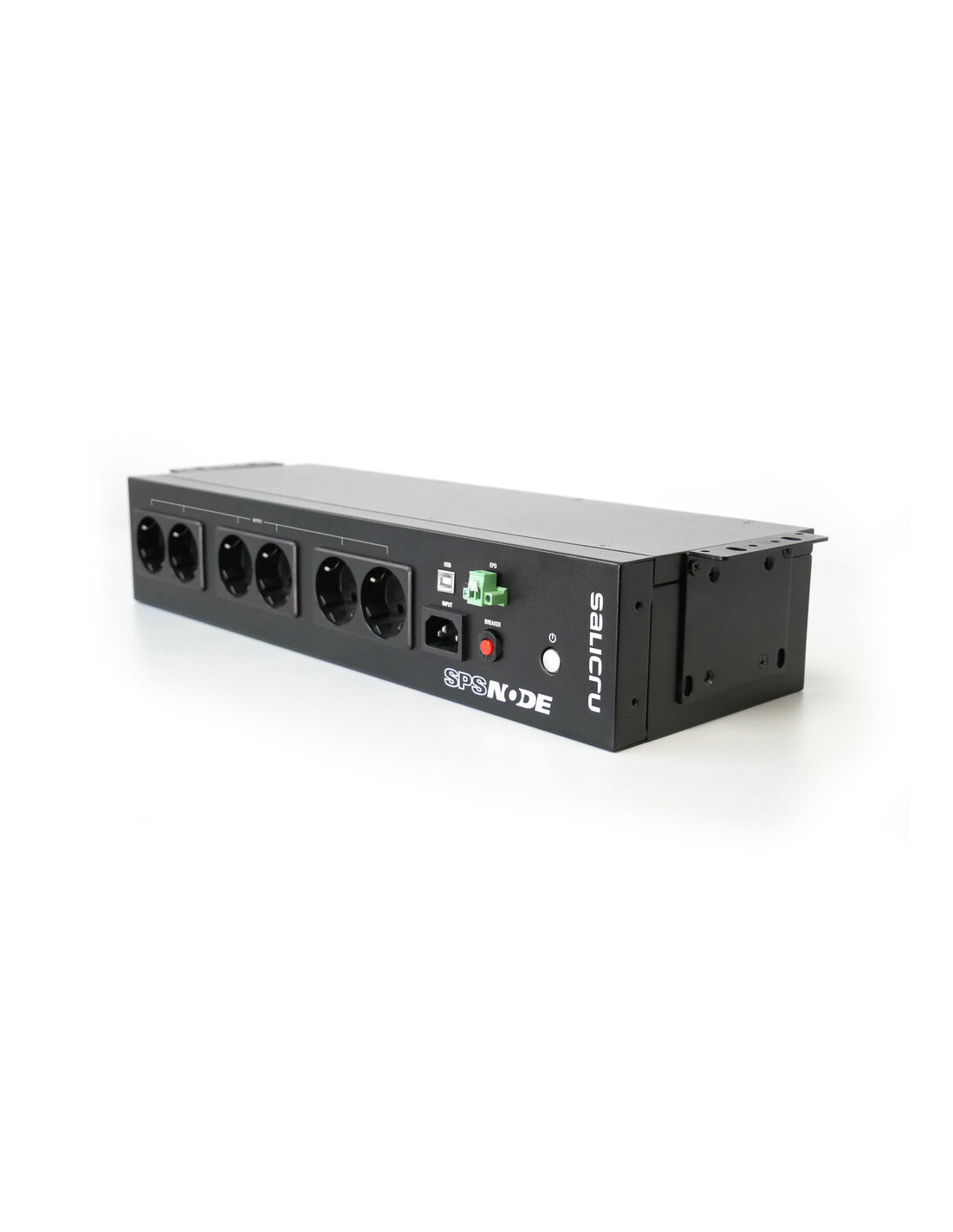 Con características como el reinicio automático, EPO (Orden de Apagado de Emergencia), APFC (Corrección de Factor de Potencia Activa), USB HID, el SPS NODE proporciona una gestión eficiente y segura de la energía. Además, la función de inicio en frío (Cold Start) asegura que puedas poner en marcha tus sistemas incluso en condiciones adversas. El botón ON/OFF multifunción luminoso avisa del estado del equipo.