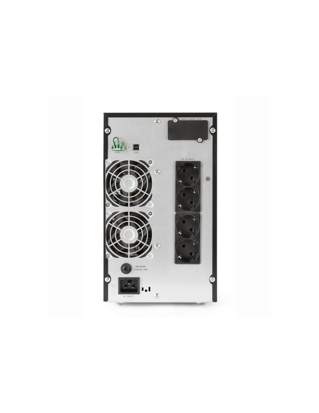 Salicru SLC-1500-TWIN PRO2. Topología UPS: Doble conversión (en línea), Capacidad de potencia de salida (VA): 1,5 kVA, Potencia de salida: 1350 W. Tipo de salida AC: Tipo F, Cantidad de salidas AC: 4 salidas AC. Tecnología de batería: Plomo-Calcio (Pb-Ca), Tiempo de recarga de la batería: 4 h. Factor de forma: Torre, Color del producto: Negro, Tipo de enfriamiento: Activo. Seguridad: EN 62040-1:2008+A1:2013