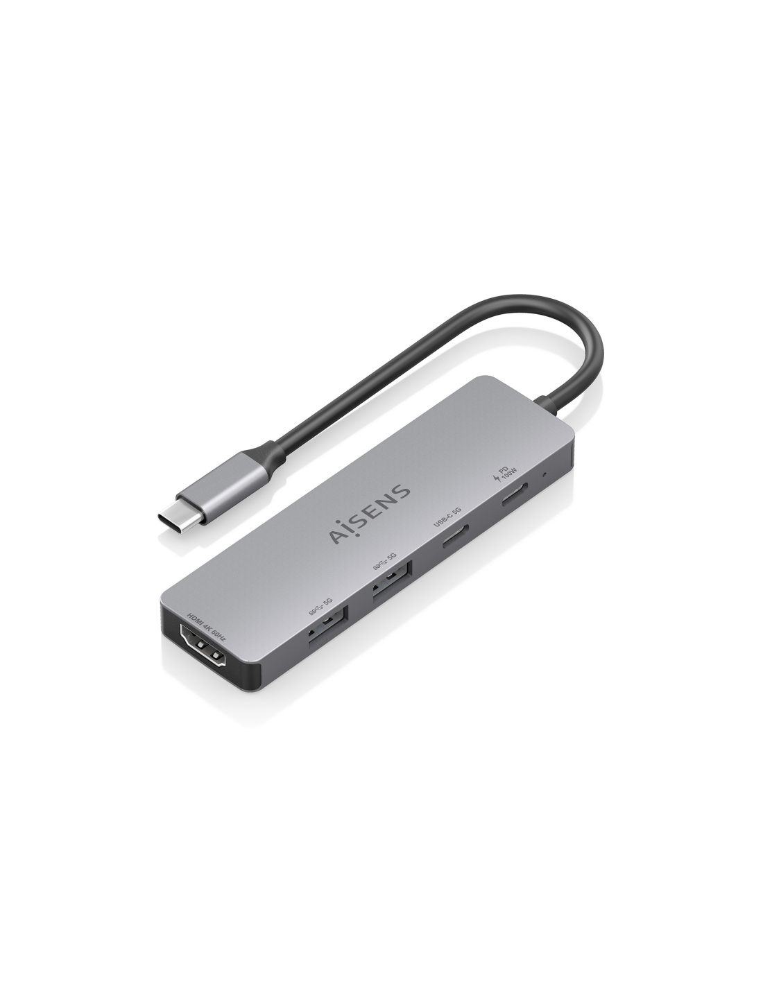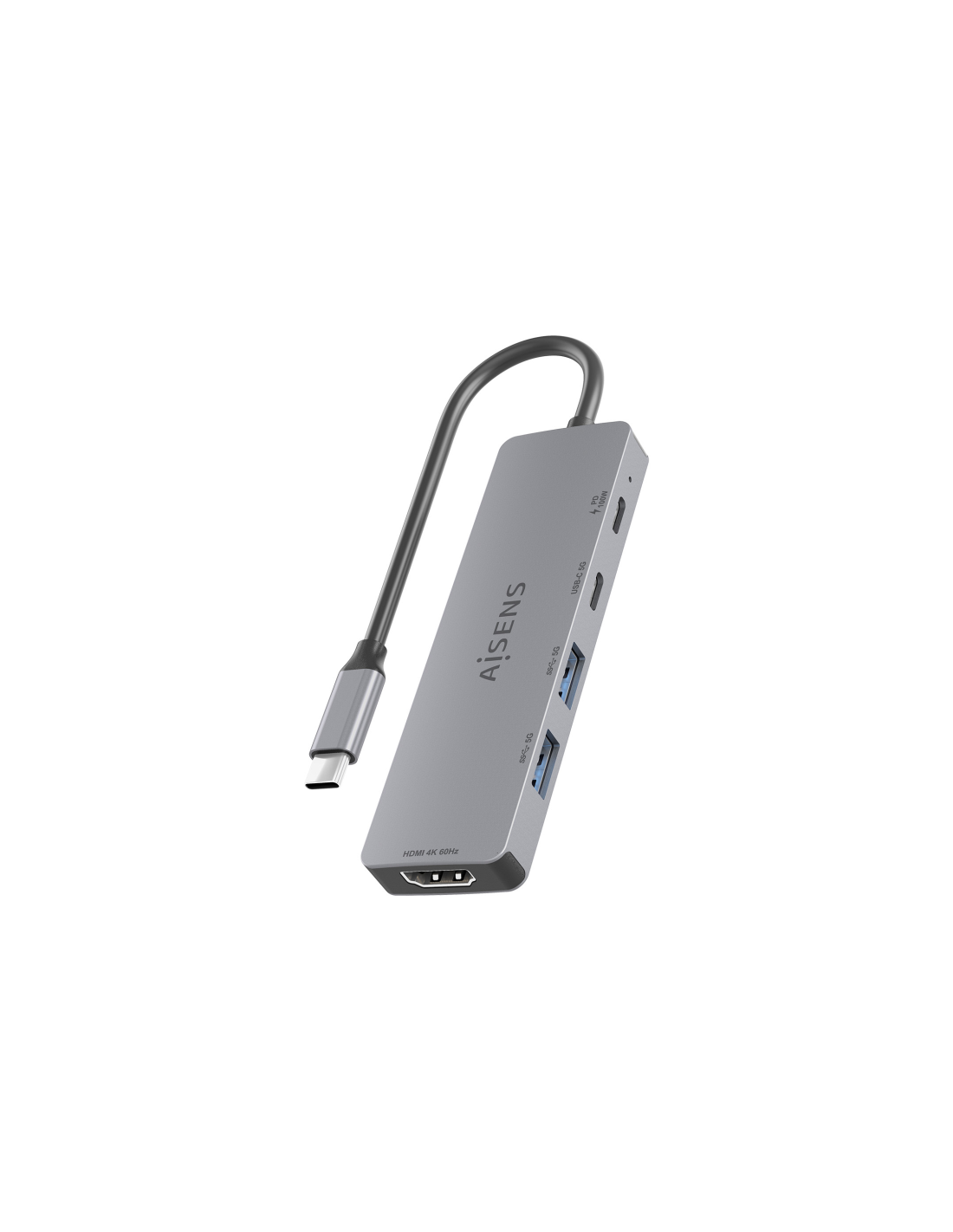 AISENS USB-C Dock 5 en 1, USB-C a 1xHDMI 2xUSB-A 1xUSB-C 1xUSB-C PD, Gris, 15cm