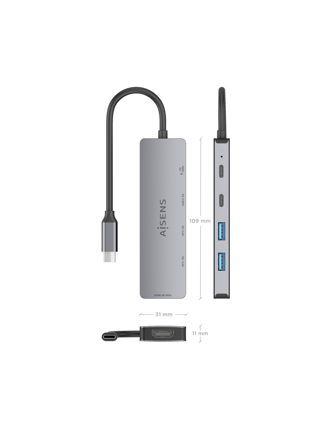 AISENS ASUC-5P028-GR Replicador de port i moll portàtil Cablejat USB 3.2 Gen 1 (3.1 Gen 1) Type-C Gris