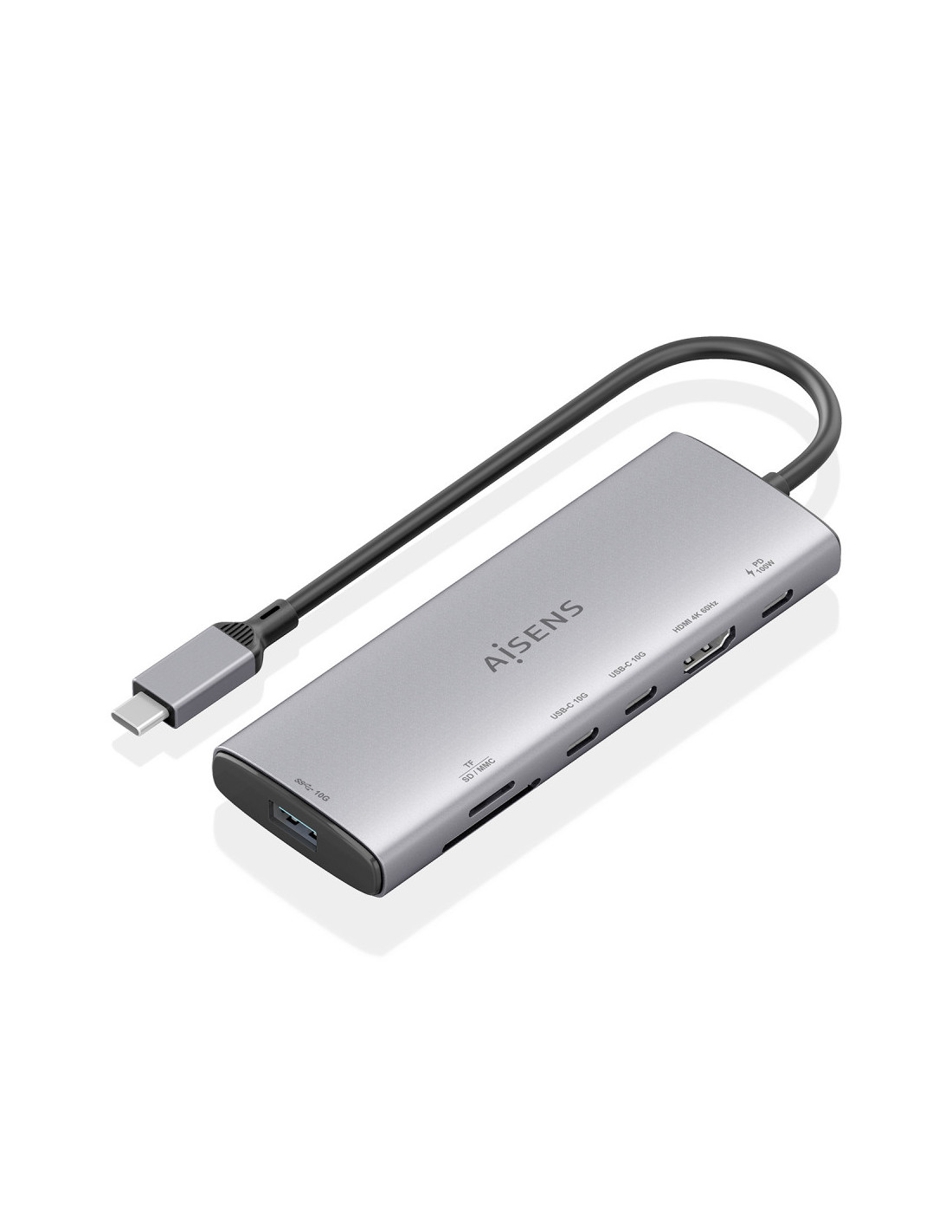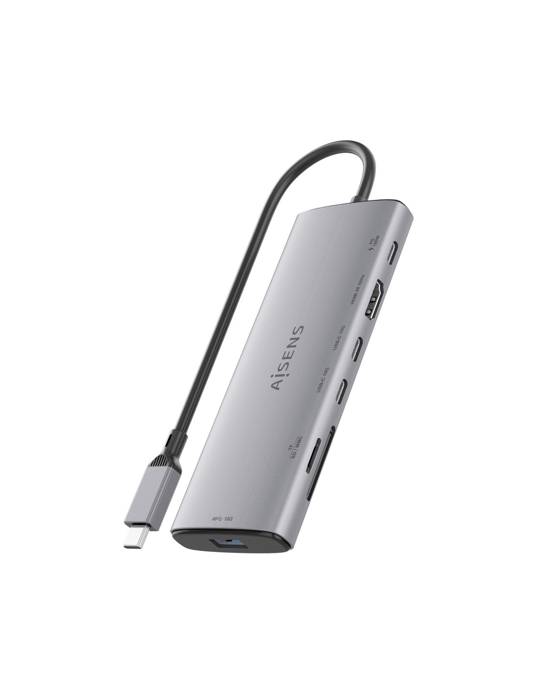 Conversor USB-C a 1xHDMI, 1xUSB-A 10G, 2xUSB-C 10G, 1xLector de tarjeta SD, 1xLector de tarjeta MICRO SD, 1xUSB-C PD 100W.