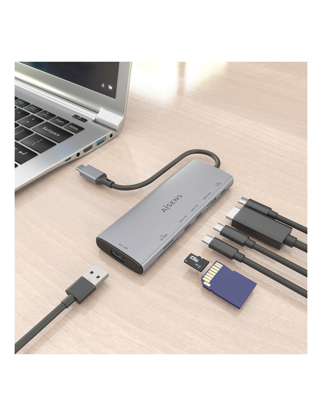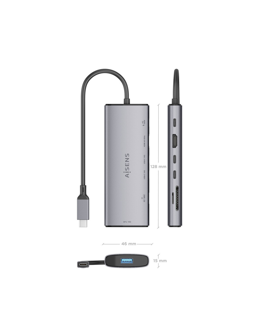AISENS ASUC-7P031-GR Replicador de port i moll portàtil Cablejat USB 3.2 Gen 1 (3.1 Gen 1) Type-C Gris