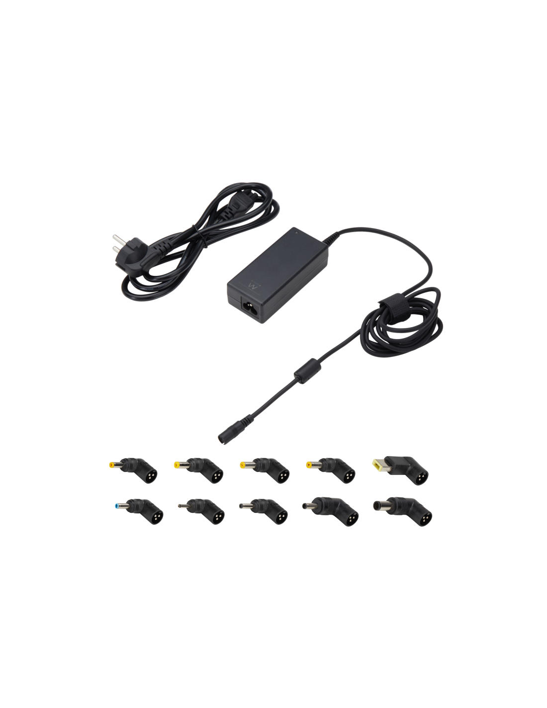 Todos los cargadores portátiles EWENT vienen con puntas sólidas de alta calidad. Se ajustan firmemente en la toma de corriente de su ordenador portátil. El cargador EWENT EW3968 viene con 10 consejos para los portátiles más comunes de Acer, HP, Dell, Asus, Sony, Toshiba, Compaq, Samsung, IBM, Lenovo, Liteon. Esta fuente de alimentación universal ajusta su voltaje de salida usando una técnica inteligente que detecta qué enchufe de alimentación está conectado. Para encontrar el tapón que se adapte a su cuaderno, no sólo no comprobar si el enchufe queda físicamente a la toma de corriente de su dispositivo, sino también comprobar si el voltaje que se indica en la punta del adaptador es correcto para su computadora portátil. Compruebe la caja de regalo de productos para una visión general de la tensión de cada cable de alimentación.