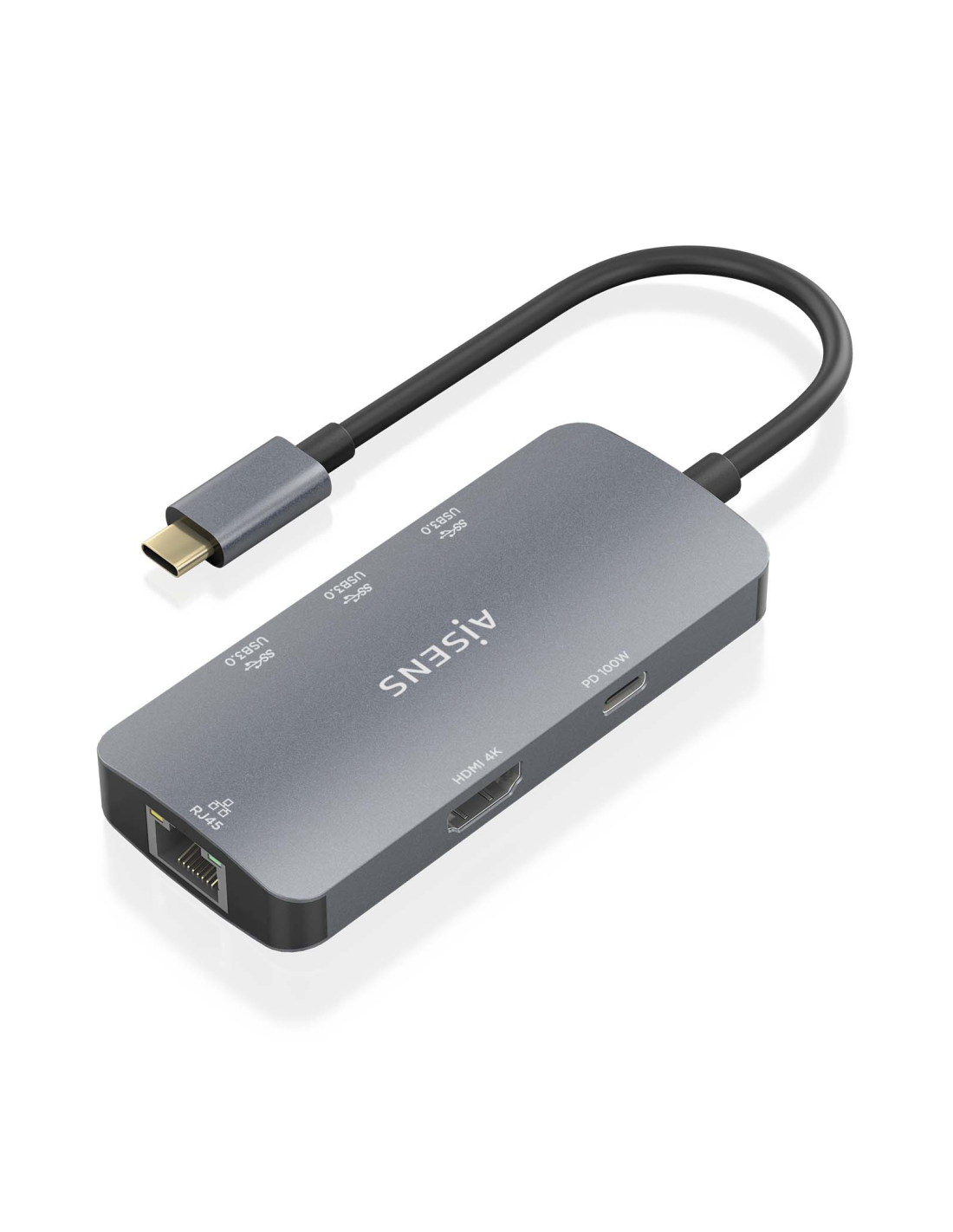 AISENS USB-C Dock 6 En 1, USB-C a 1xHDMI, 1xRJ45, 3xUSB-A, 1xUSB-C PD, Gris, 15cm. Tecnología de conectividad: Alámbrico, Interfaz de host: USB 3.2 Gen 1 (3.1 Gen 1) Type-C, Entrega de energía USB (USB Power Delivery) de hasta: 100 W. Ethernet LAN, velocidad de transferencia de datos: 10,100,1000 Mbit/s, Estándares de red: IEEE 802.3, IEEE 802.3ab, IEEE 802.3az, IEEE 802.3u, IEEE 802.3x. Color del producto: Gris, Velocidad de transferencia de datos: 5 Gbit/s, Tipo HD: 4K Ultra HD. Alimentación: USB, Conecto