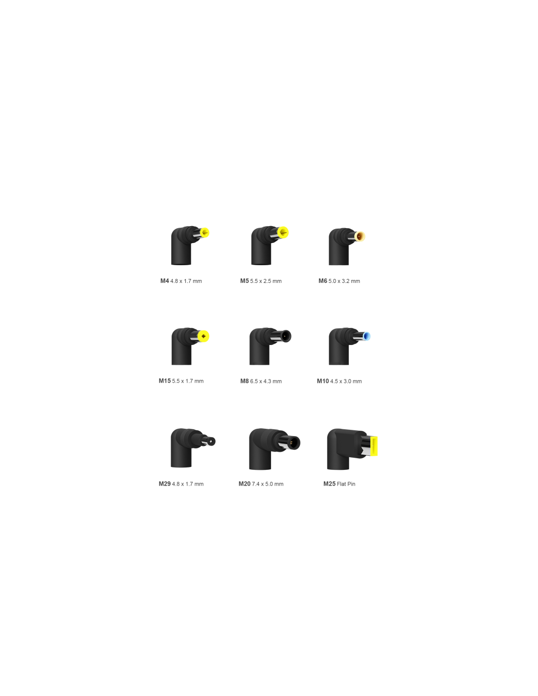 - M5 : 19V / 5.5*2.5mm / Acer, ASUS, Dell, Delta, Toshiba, HP, Liteon, Nec, Gateway