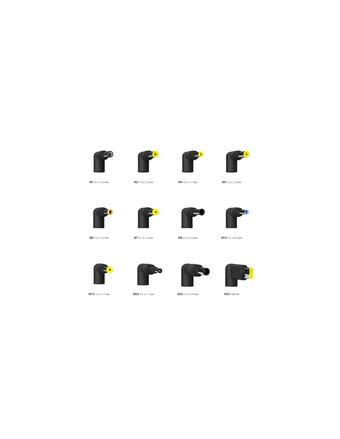 - M7: 19V / 5.5*2.1*12.5mm / Acer, Compaq, Delta, Hp, Fujitsu, Gateway, Toshiba, Liteon